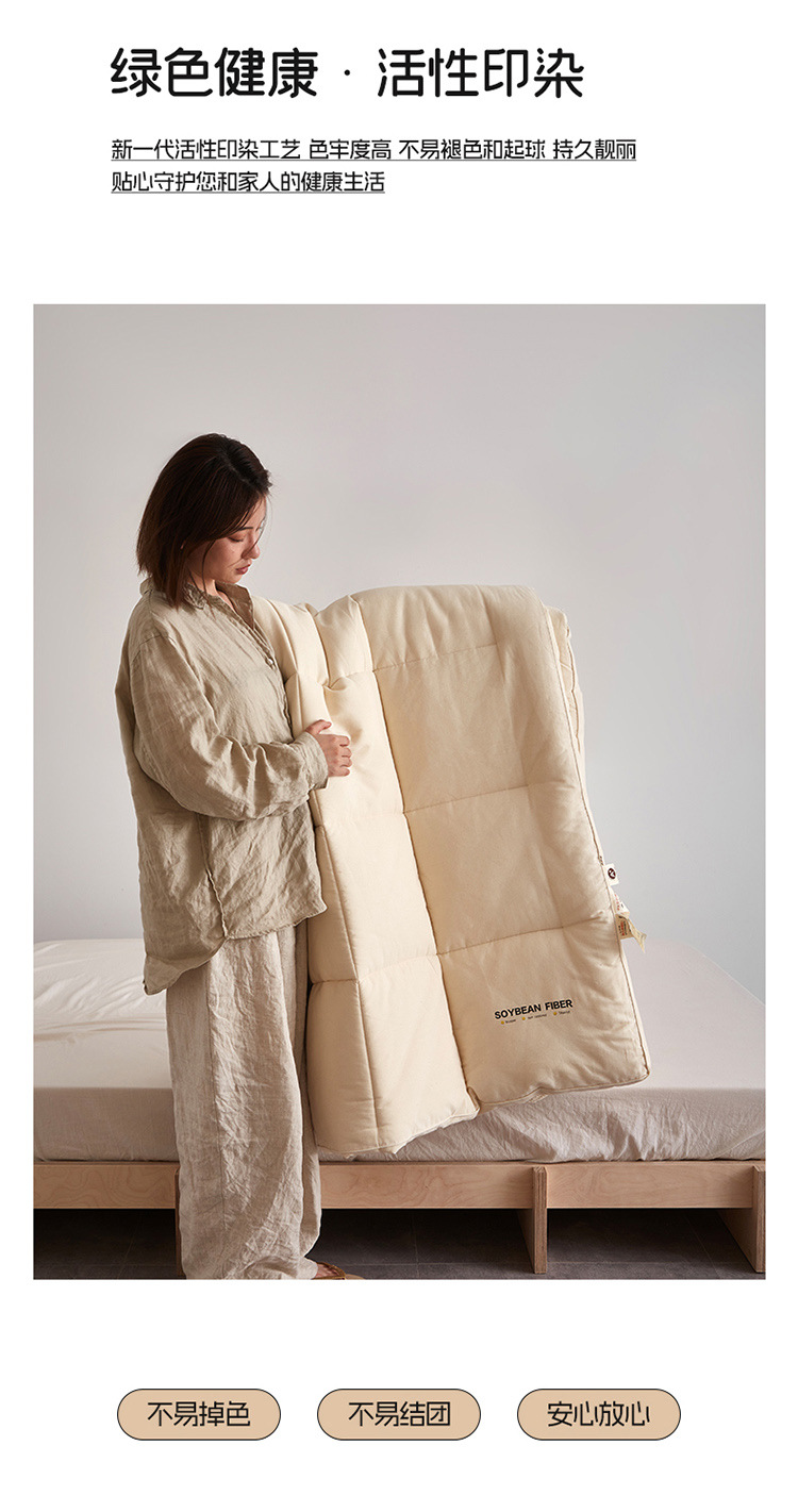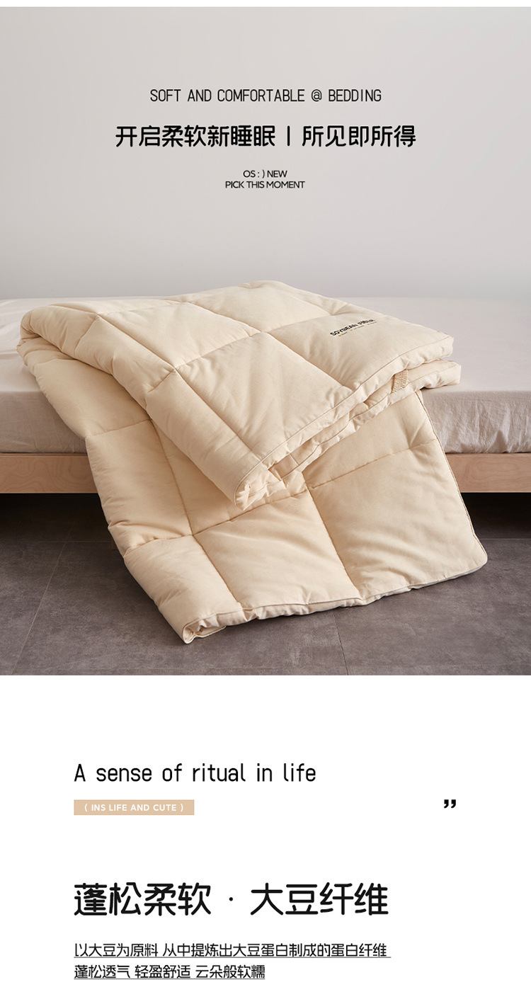 【皱皱纱大豆被】全棉双层纱被芯良品被子大豆纤维被四季秋冬保暖柔软,(白鹭)米白色