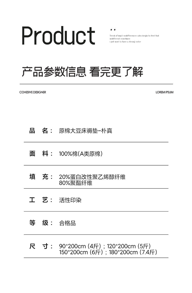 商品名称:(总)良品汇馆 日式无印a类全棉大豆床垫良品透气保暖原棉床褥垫5cm加厚床垫子