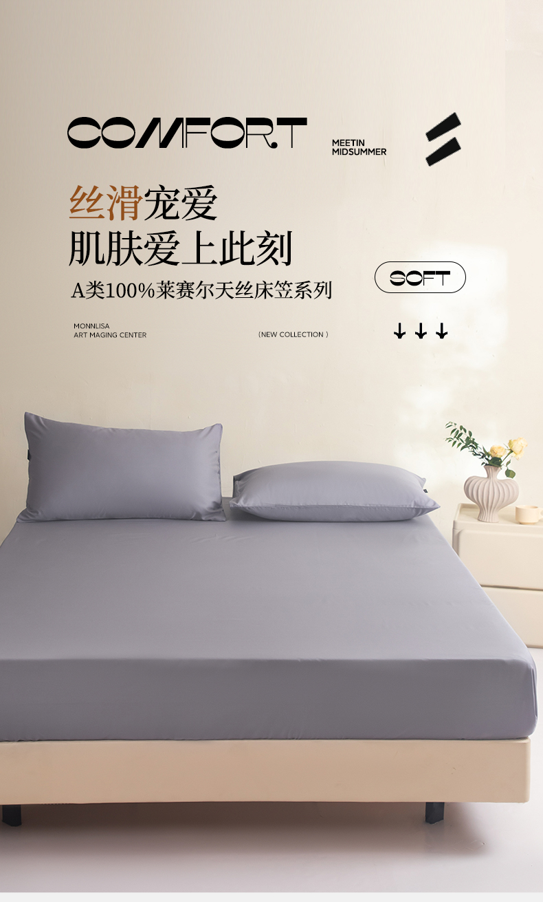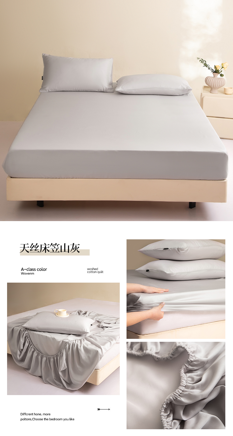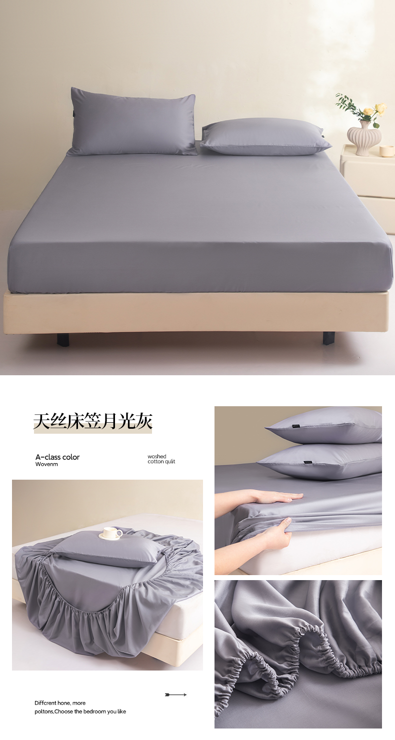 商品名称:莱登卡奴 2025新款A类50支莱赛尔天丝单品系列 天丝床笠月光灰