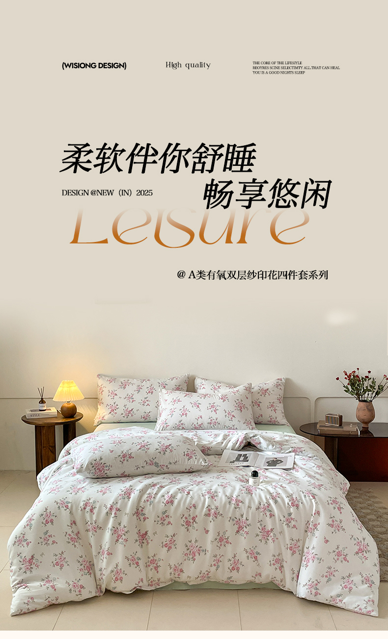 (总2)诺梵家纺 2025新款有氧双层纱印花四件套,安琪拉,半亩花田,贝利,沉香,春不晚,春序,丛林絮语,叮当熊,粉色蔷薇,花千朵-兰,花夕子,卢卡斯,洛娜,梅林春晓,慕斯,奶油甜心,妮卡,奇幻木马,蔷薇园,清新田野,情结-粉,情结-灰,香榭,小苍兰,小马宝丽,幸福里,尤朵拉,云锦香,花开半夏,香可可,格林童话,奶油小狗