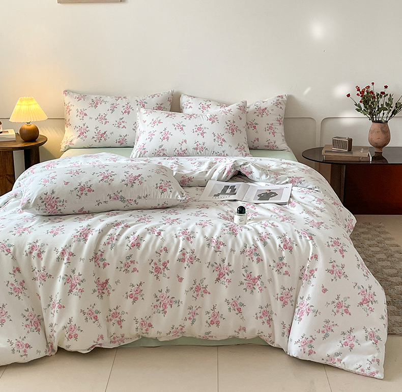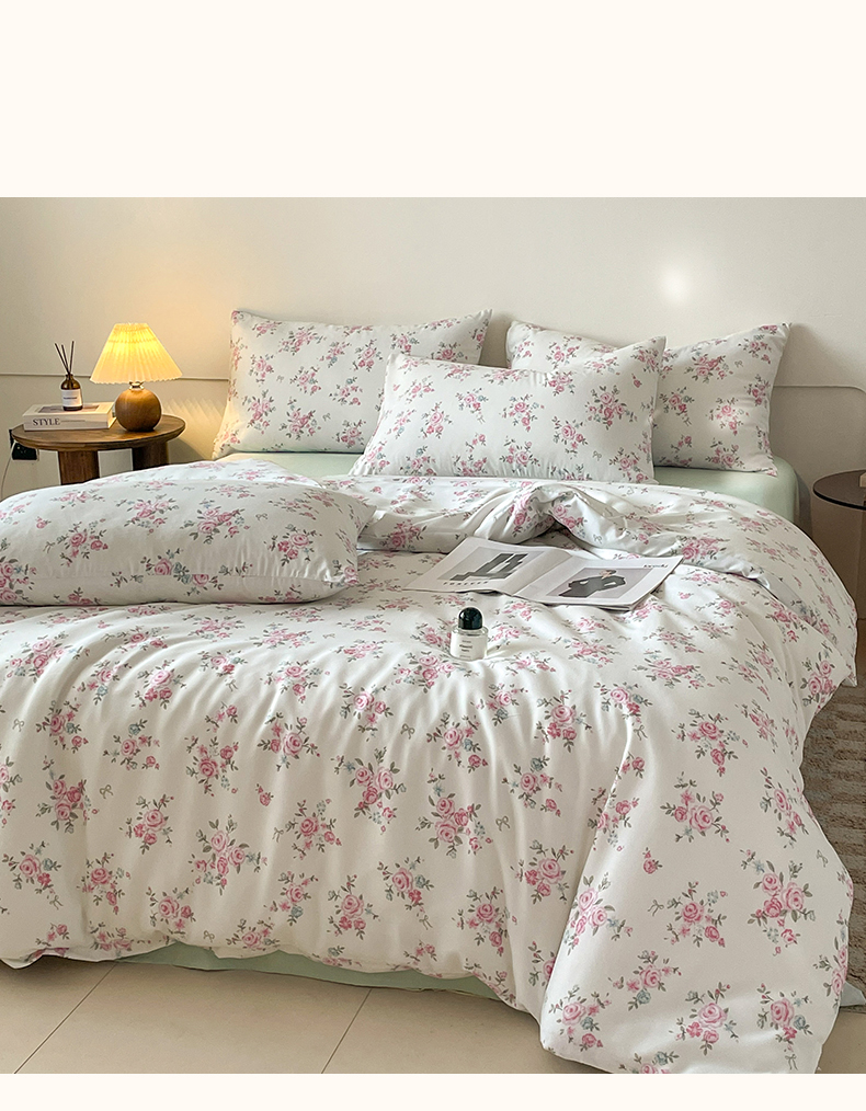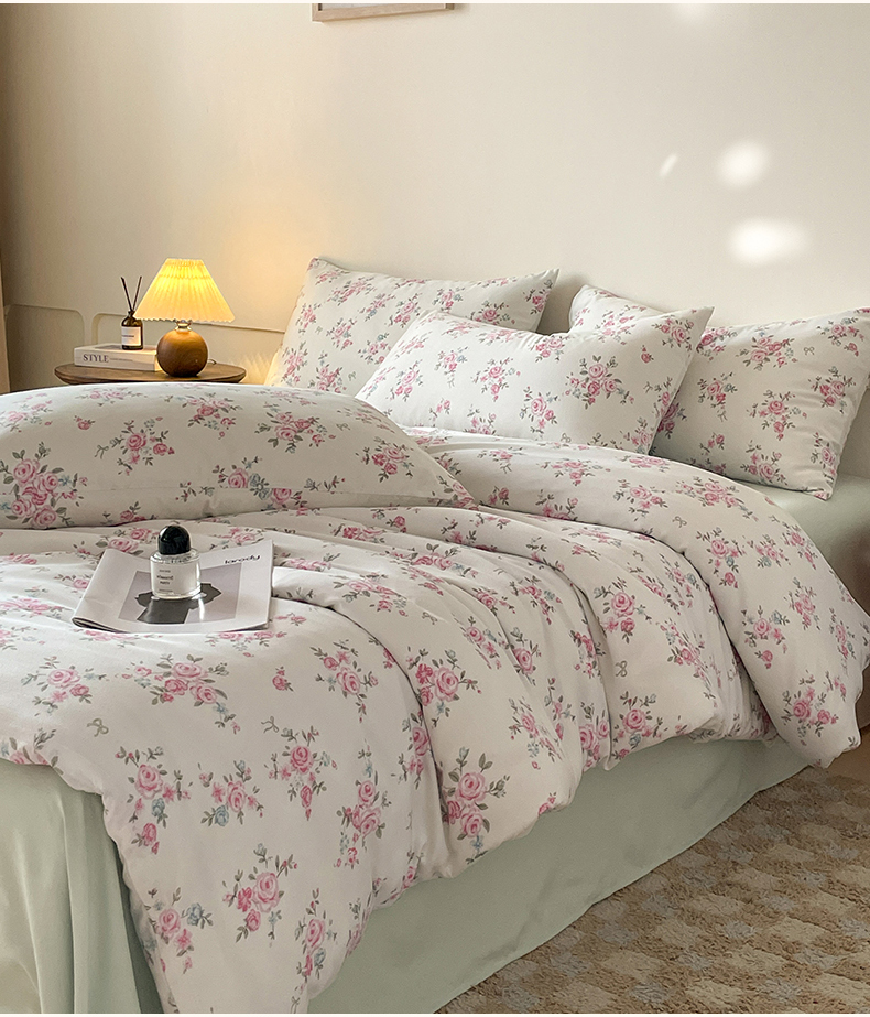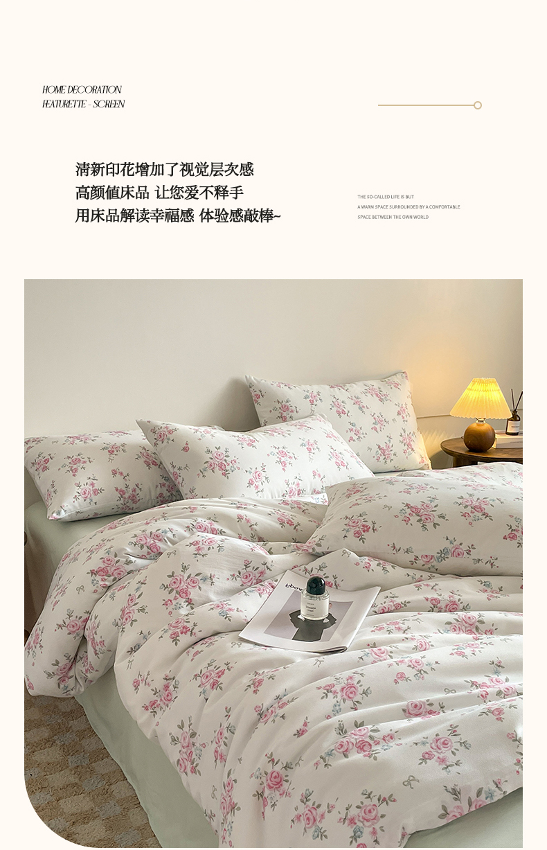 商品名称:诺梵家纺 2025新款有氧双层纱印花四件套 粉色蔷薇
