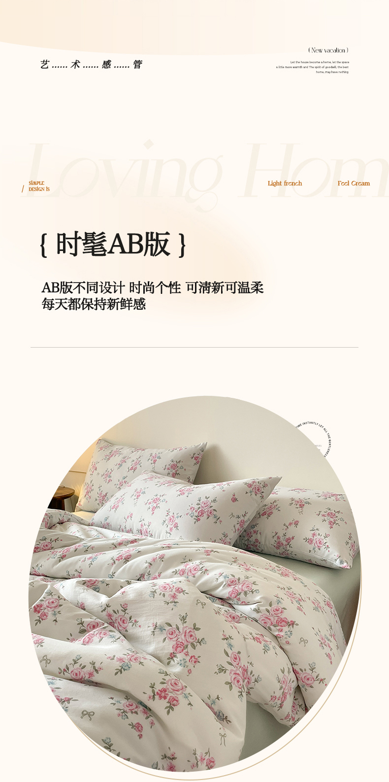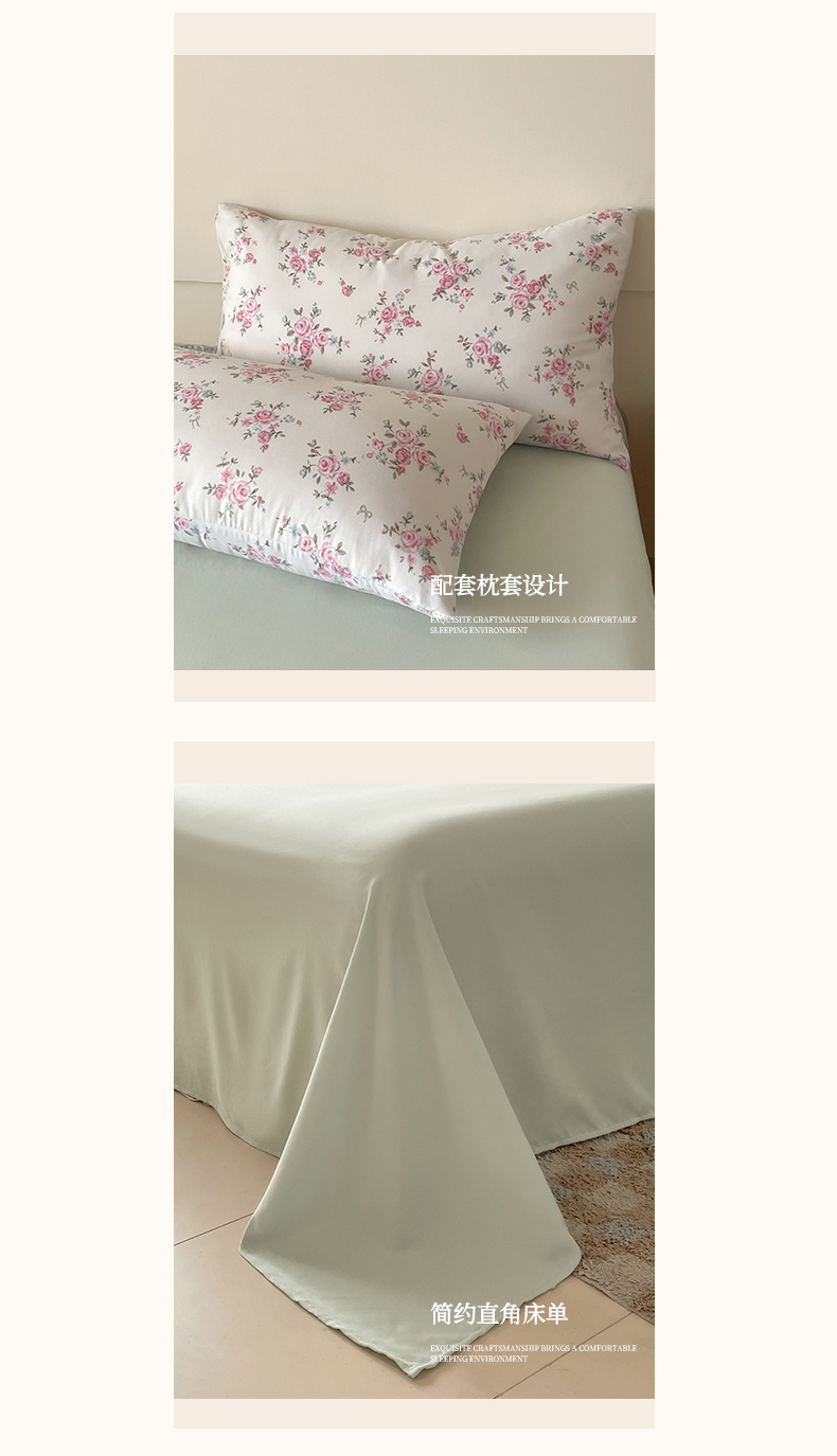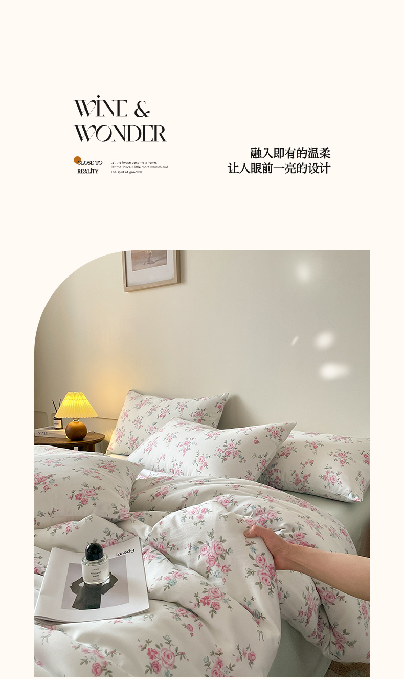 商品名称:诺梵家纺 2025新款有氧双层纱印花四件套 粉色蔷薇