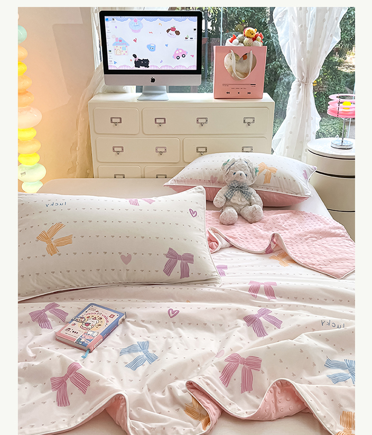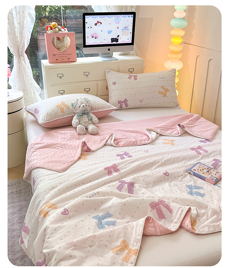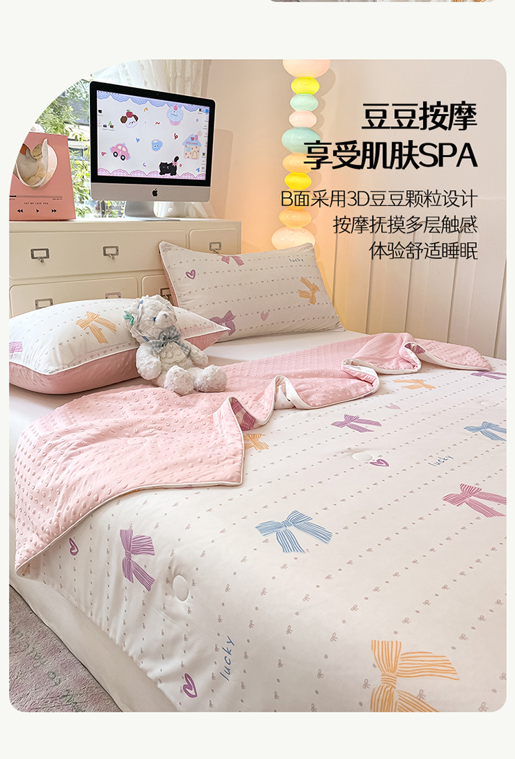 羚羊语2025新款A类凉感丝冰豆豆夏凉被 蝴蝶结