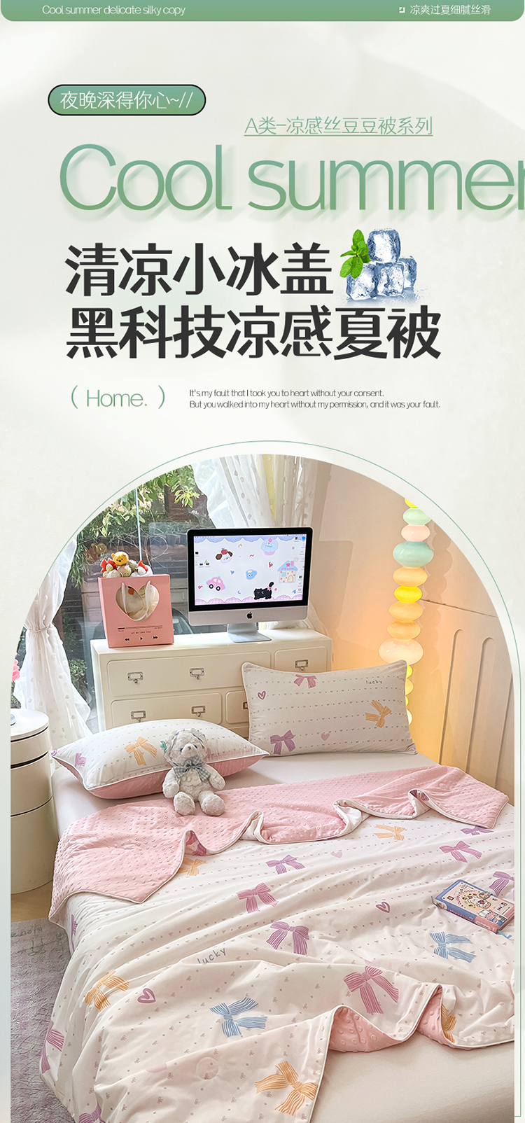 商品名称:羚羊语2025新款A类凉感丝冰豆豆夏凉被 蝴蝶结