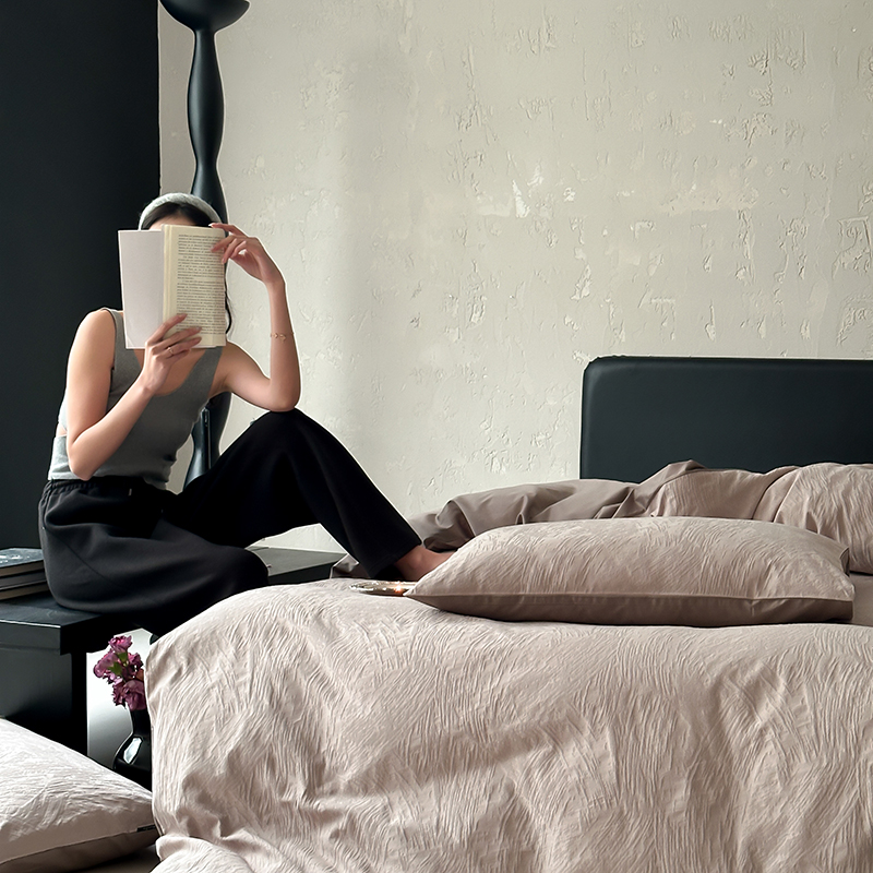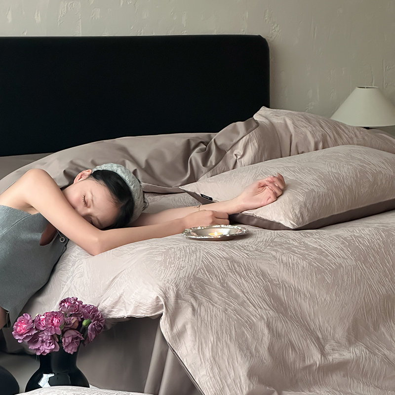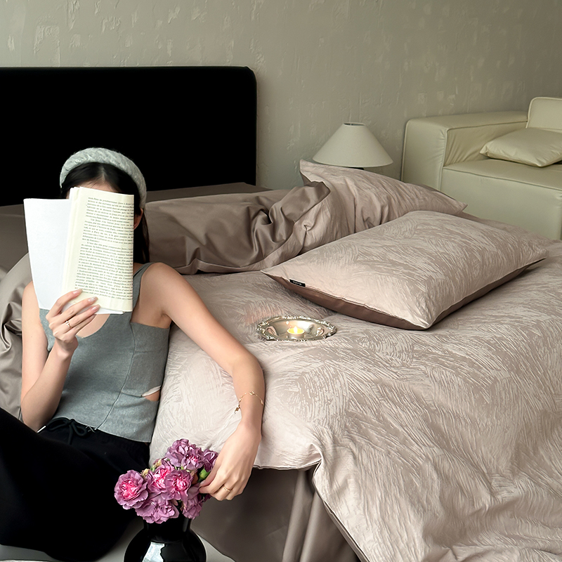 玉宇阁 2025新款100S全棉大提花四件套-月岛弥生 可可棕