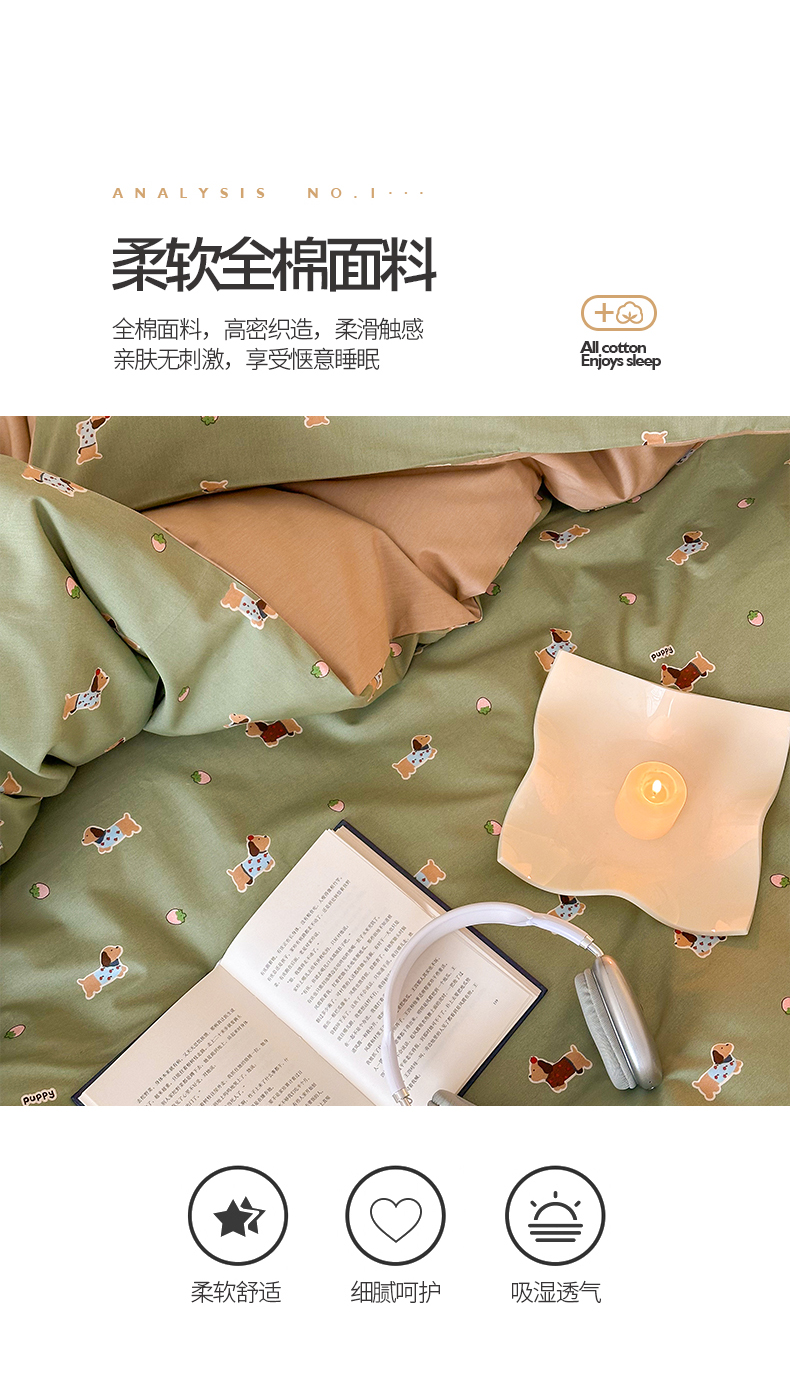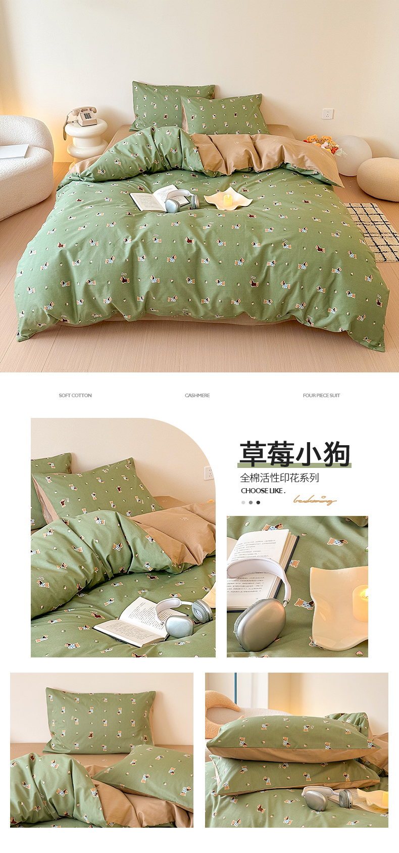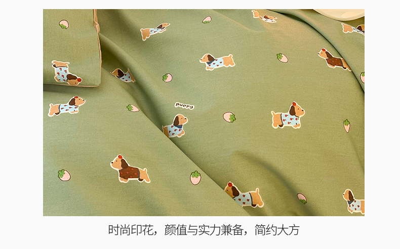 商品名称:典曼家纺 2025新款13372印花小清新四件套 草莓小狗