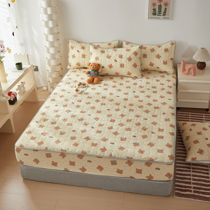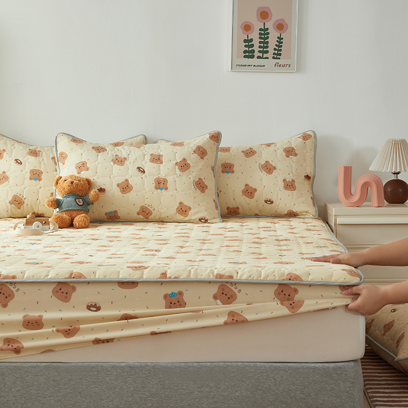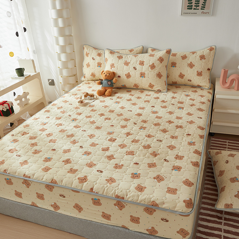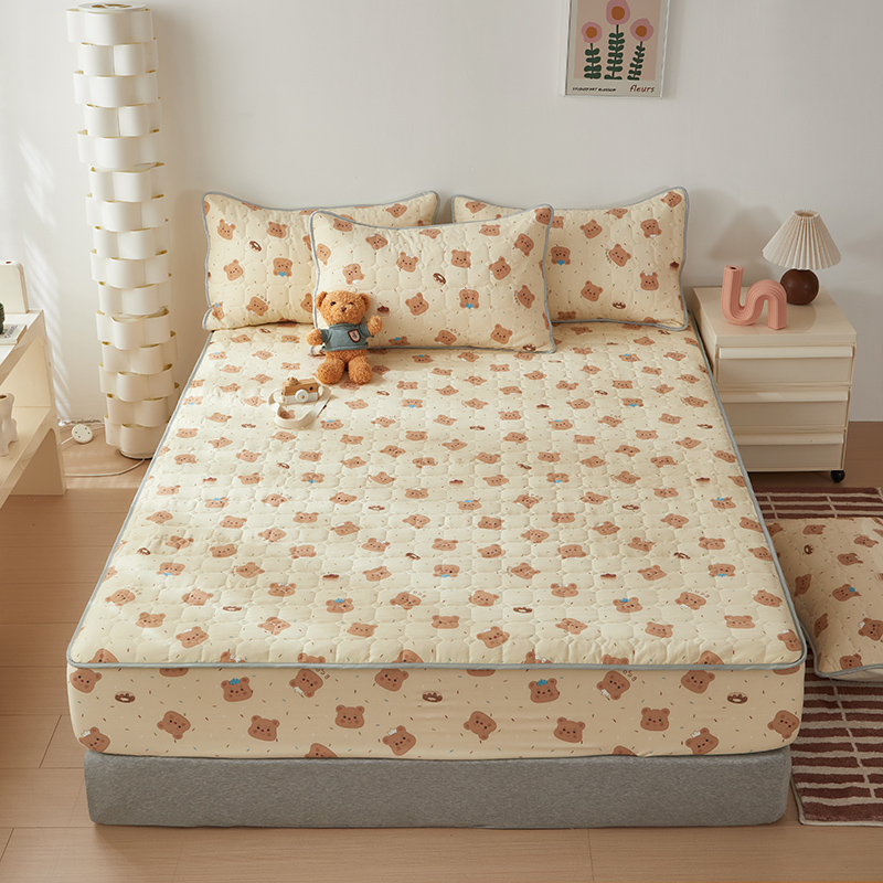 舒居家纺 2025新款亲肤夹棉卡通系列防水床笠 奥利奥小熊