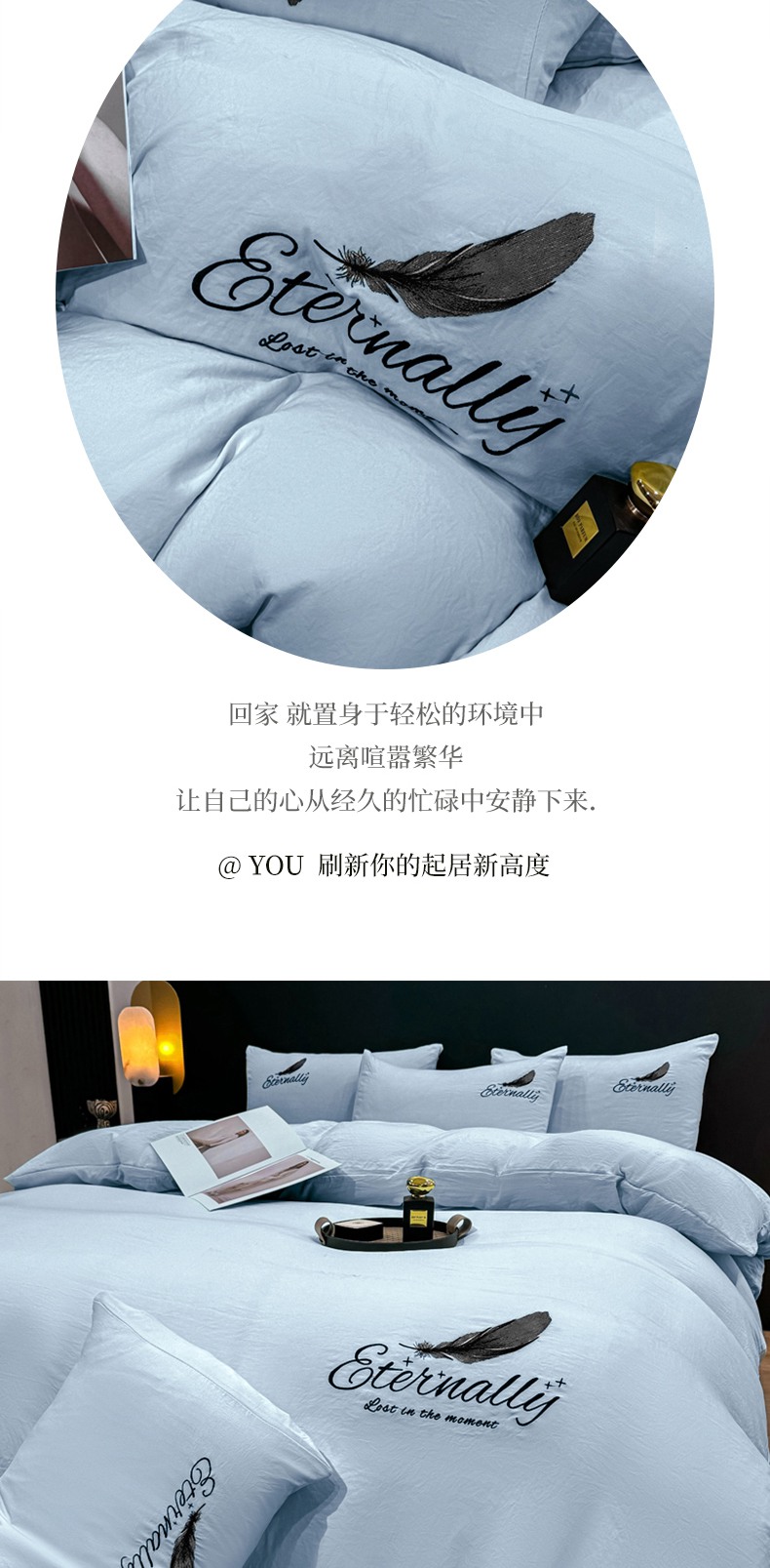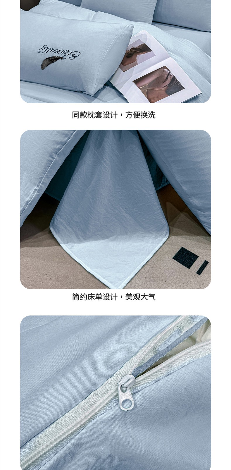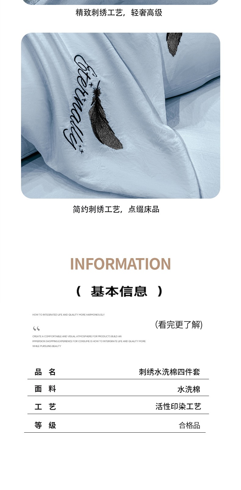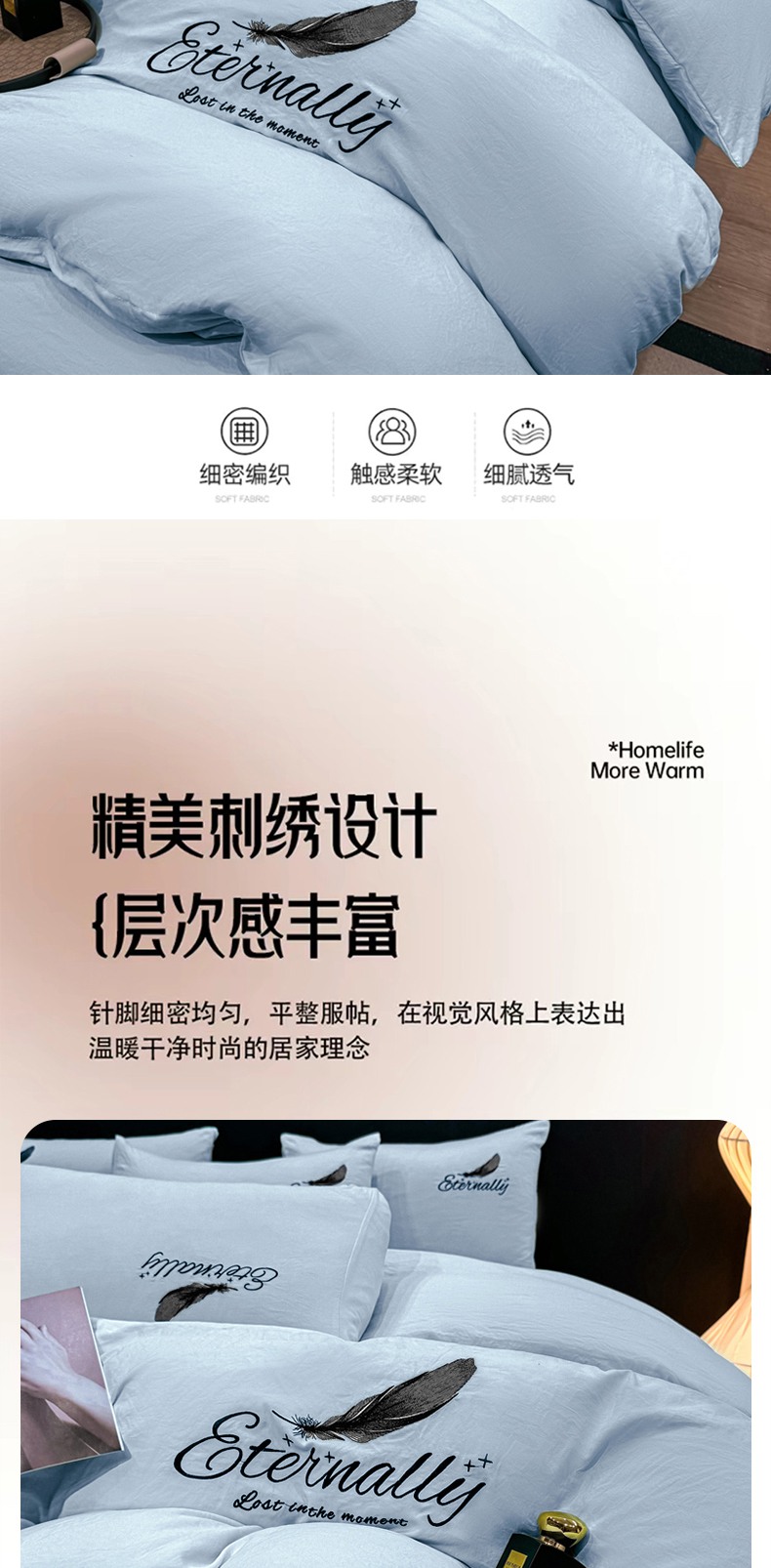 当前位置: 91家纺网 > 商品网购 > 床品套件 > 四件套 > 水洗棉四件套 > 麒东家纺 2025年新款刺绣水洗棉四件套羽毛系列 蓝色