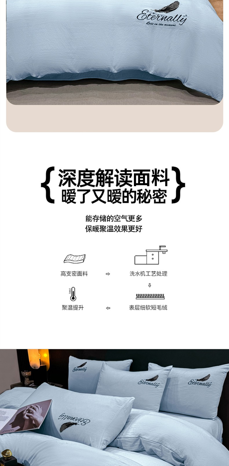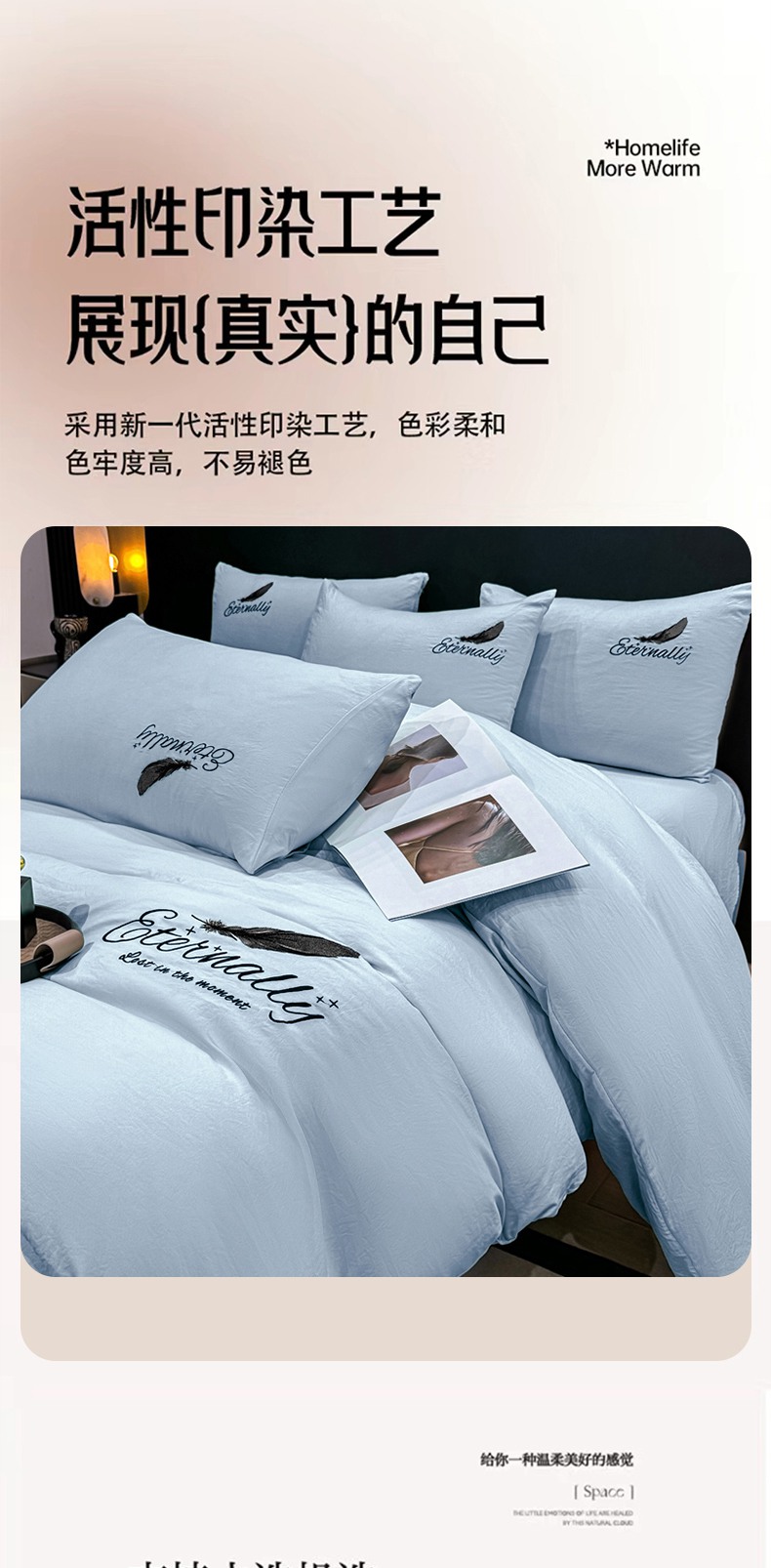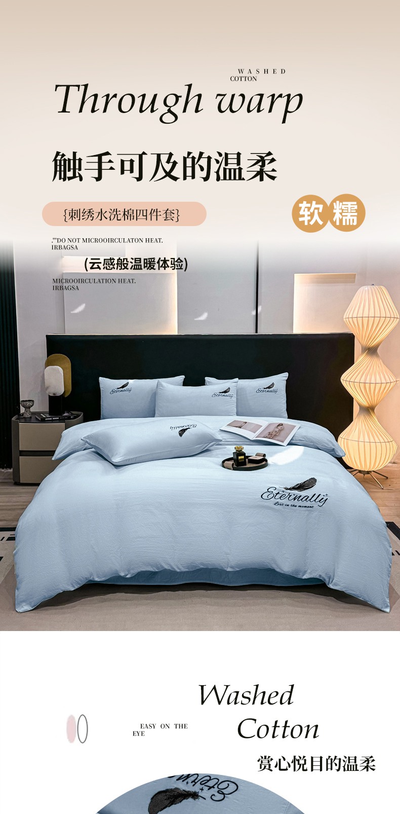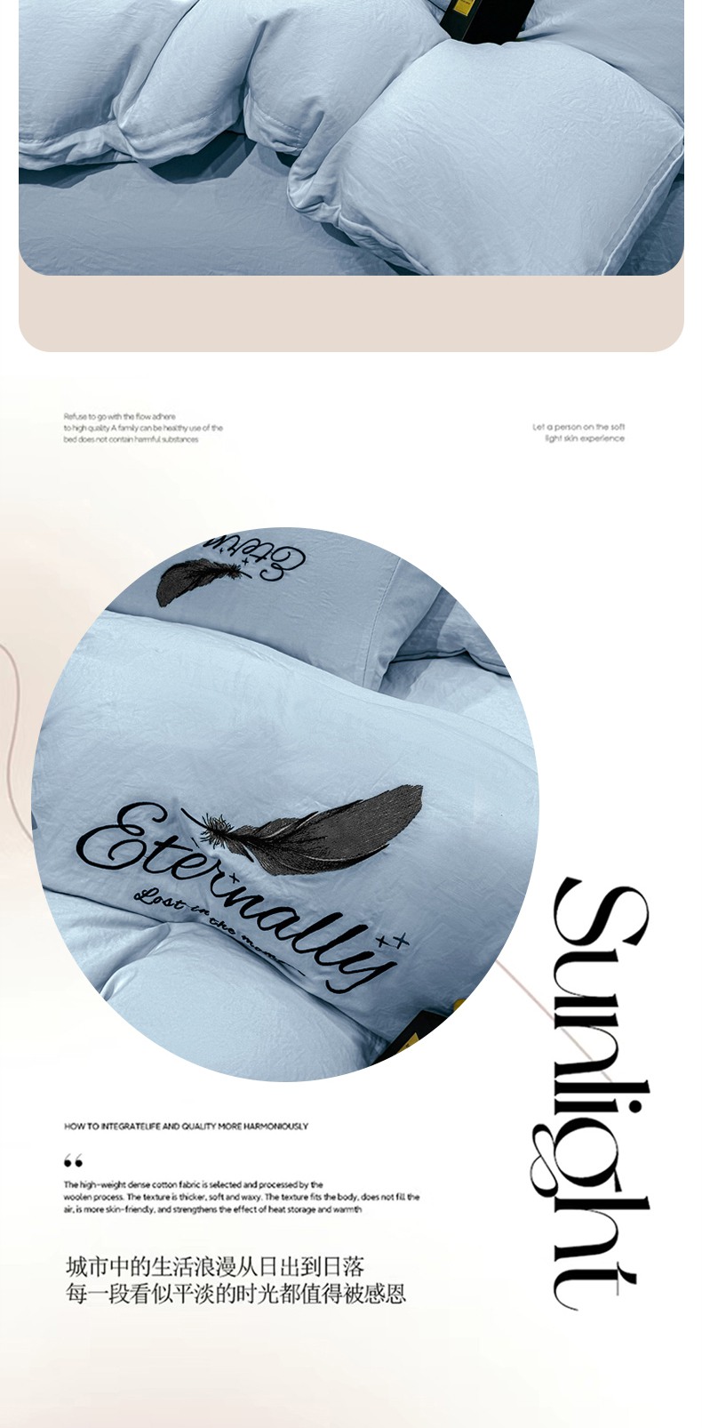 当前位置: 91家纺网 > 商品网购 > 床品套件 > 四件套 > 水洗棉四件套 > 麒东家纺 2025年新款刺绣水洗棉四件套羽毛系列 蓝色