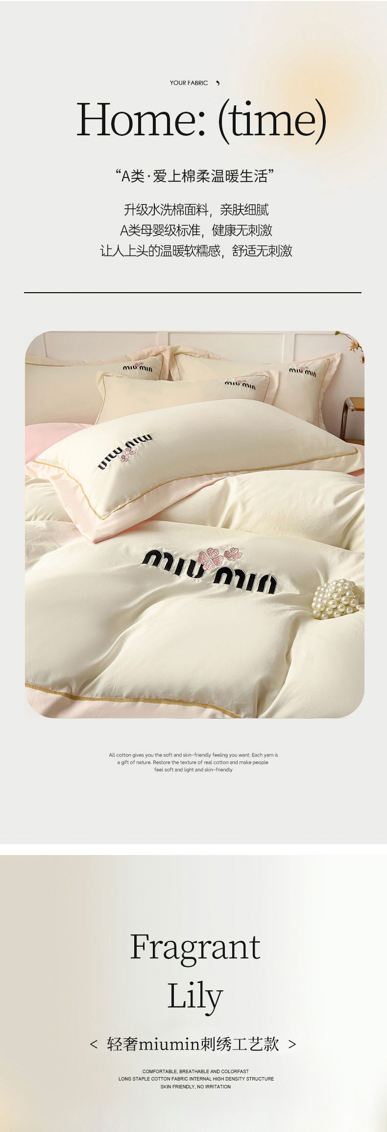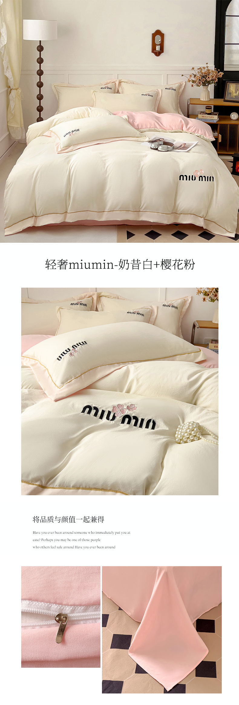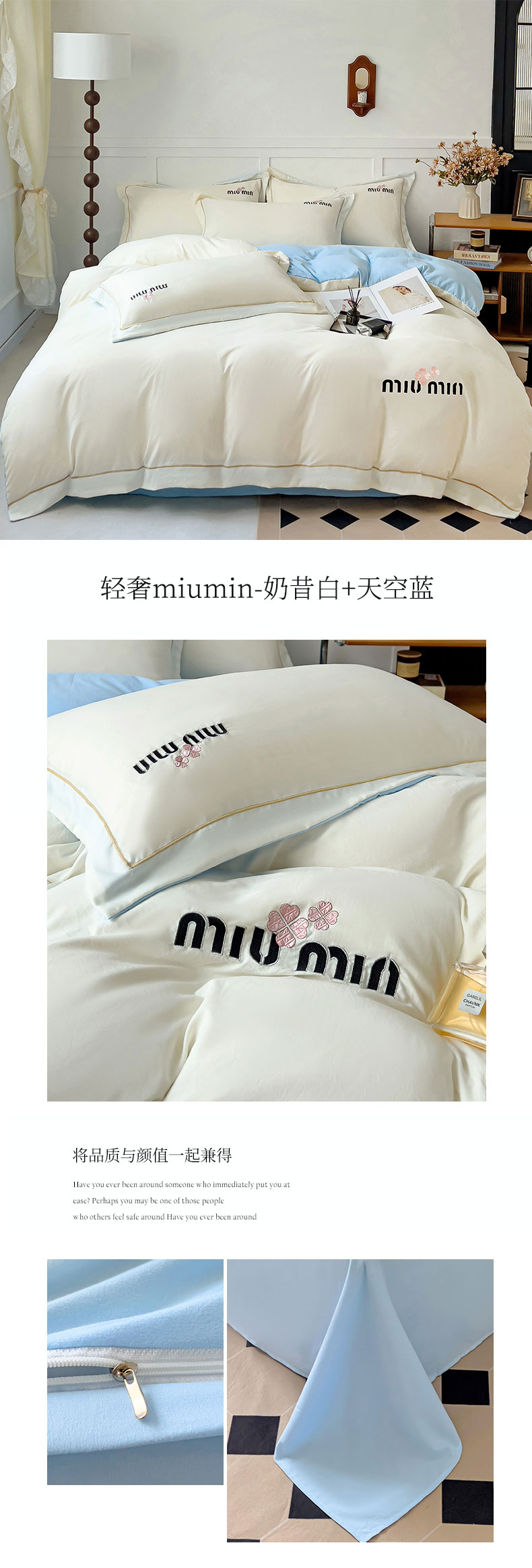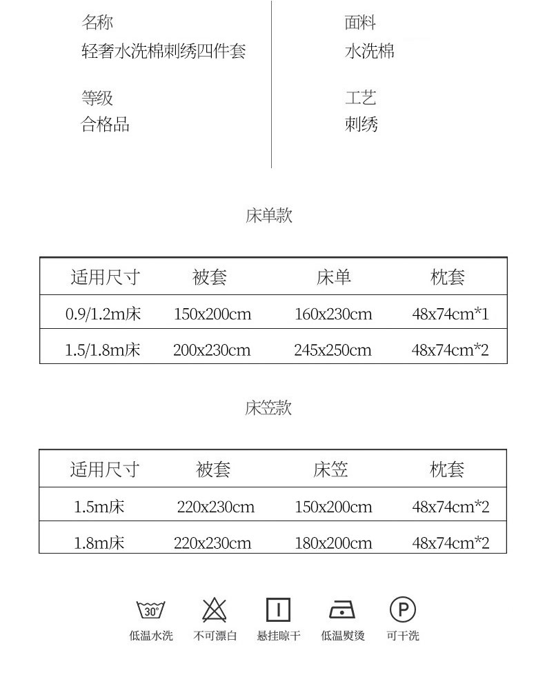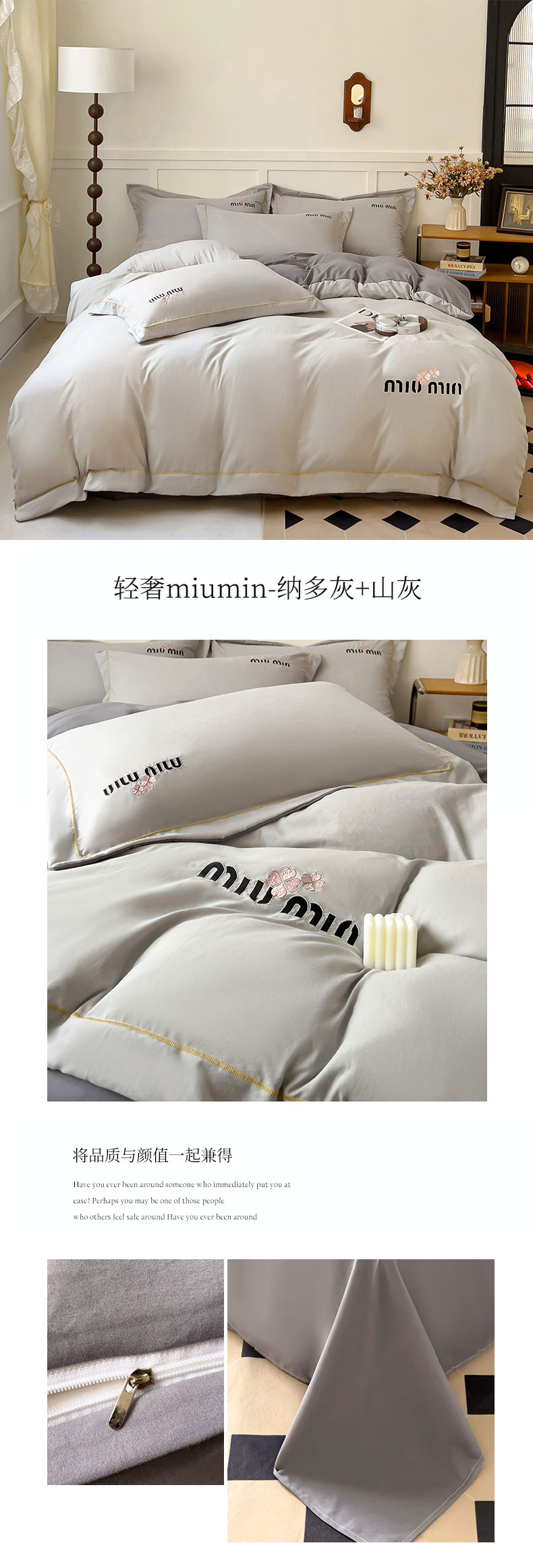 商品名称:(总)灰鲸 2025新款轻奢miumin四叶草刺绣水洗棉系列套件