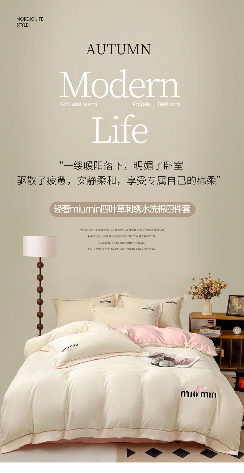 (总)灰鲸 2025新款轻奢miumin四叶草刺绣水洗棉系列套件
