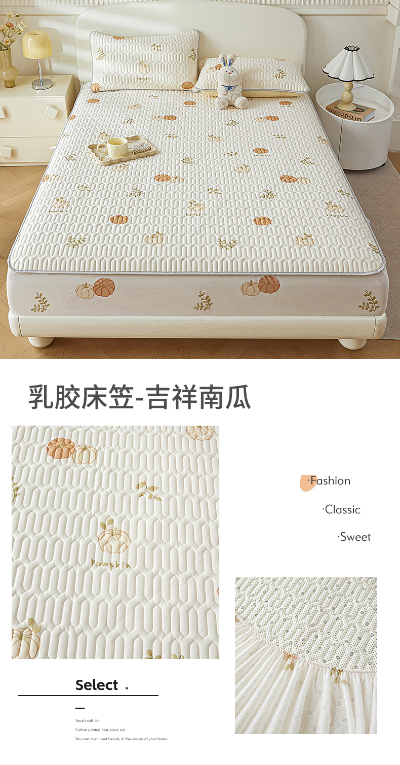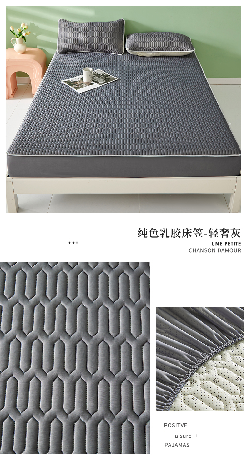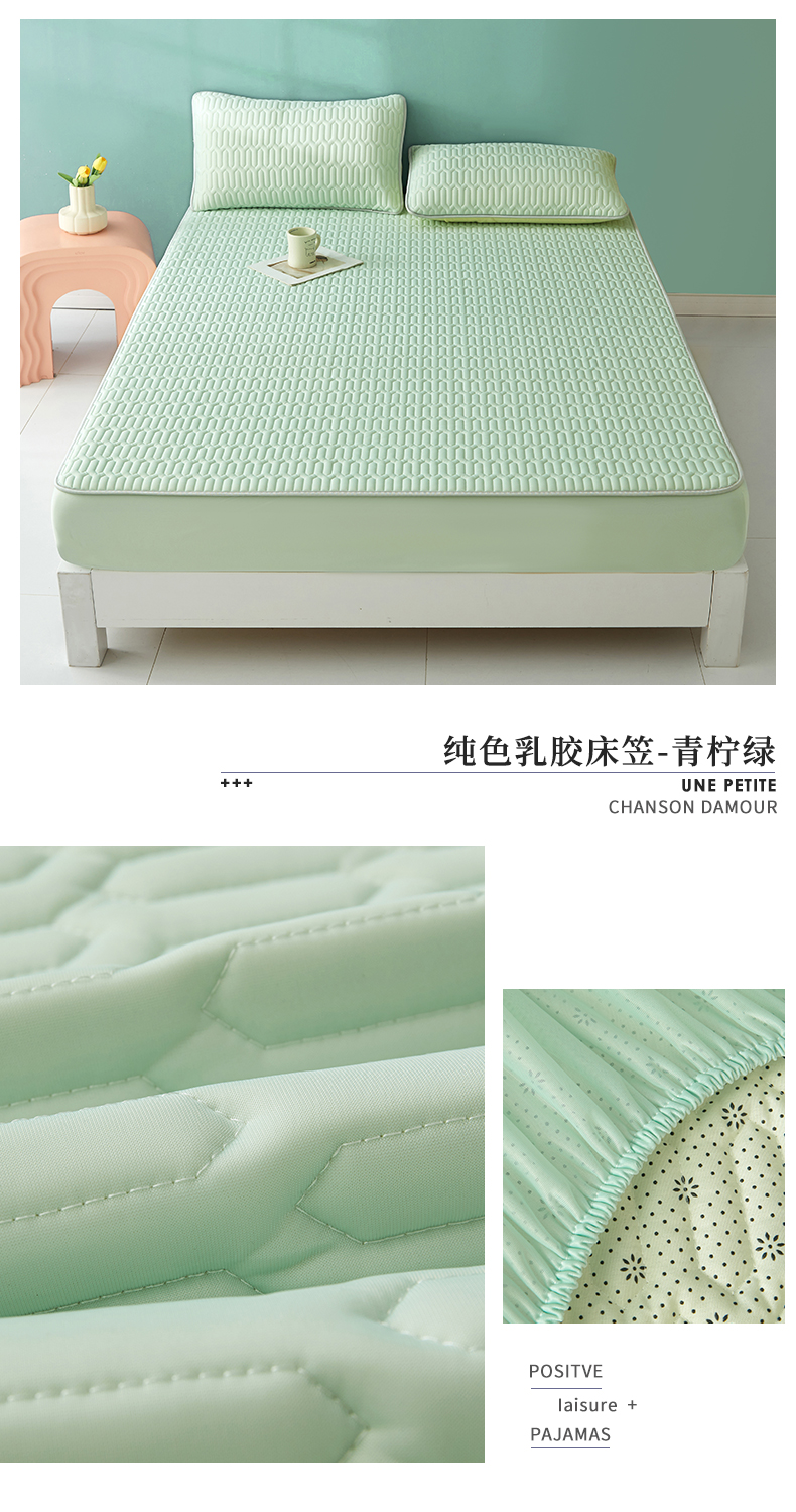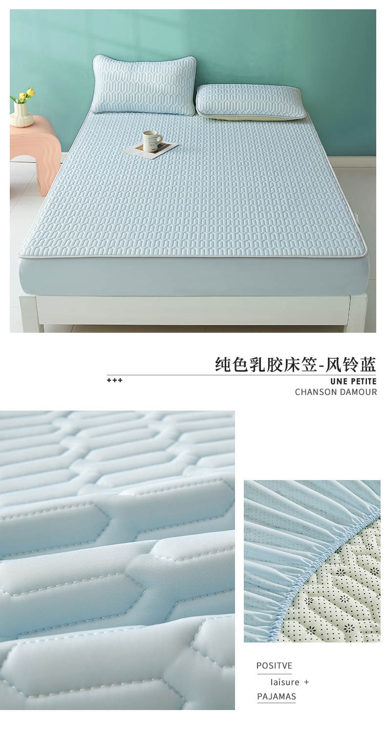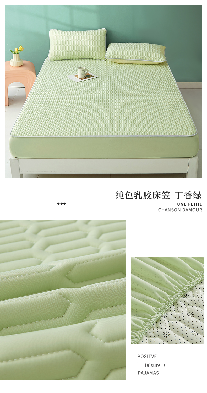 商品名称:(总)雯豆2025夏季新品0.4乳胶凉席床笠款三件套凉感丝印花纯色床罩