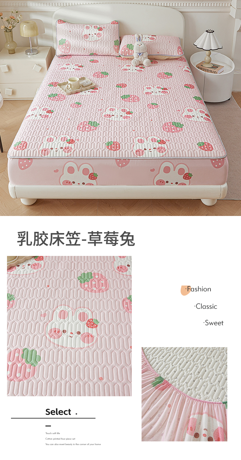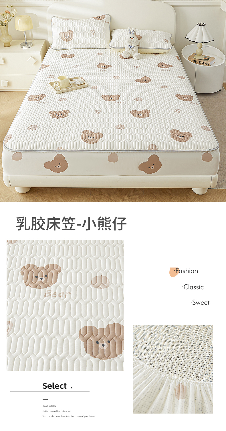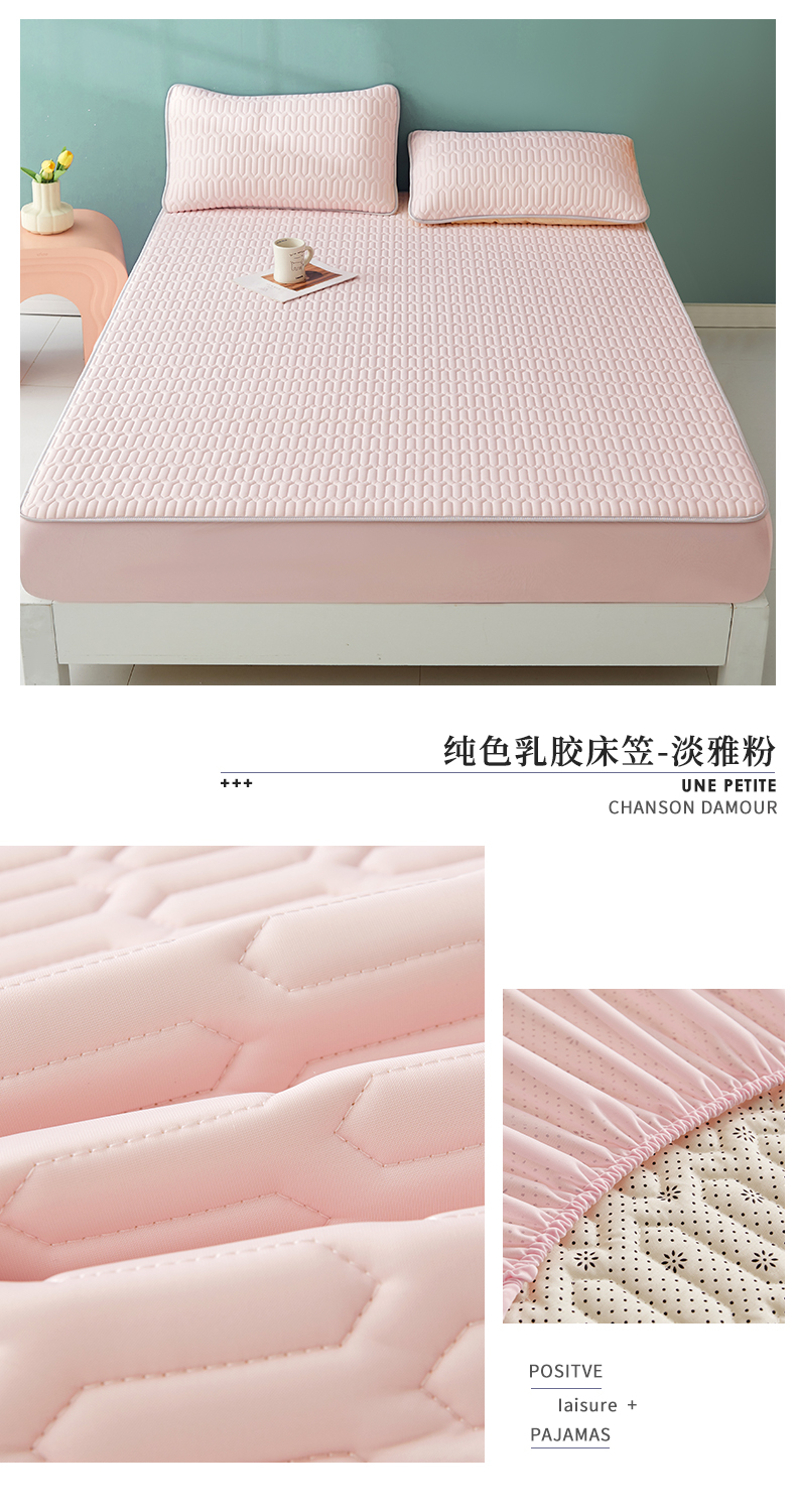 (总)雯豆2025夏季新品0.4乳胶凉席床笠款三件套凉感丝印花纯色床罩