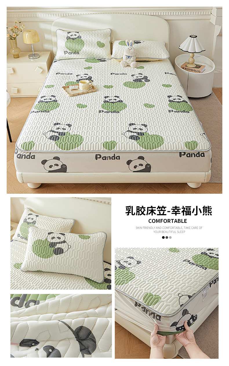 商品名称:雯豆2025夏季新品0.4乳胶凉席床笠款三件套凉感丝印花纯色床罩 乳胶床笠-幸福小熊