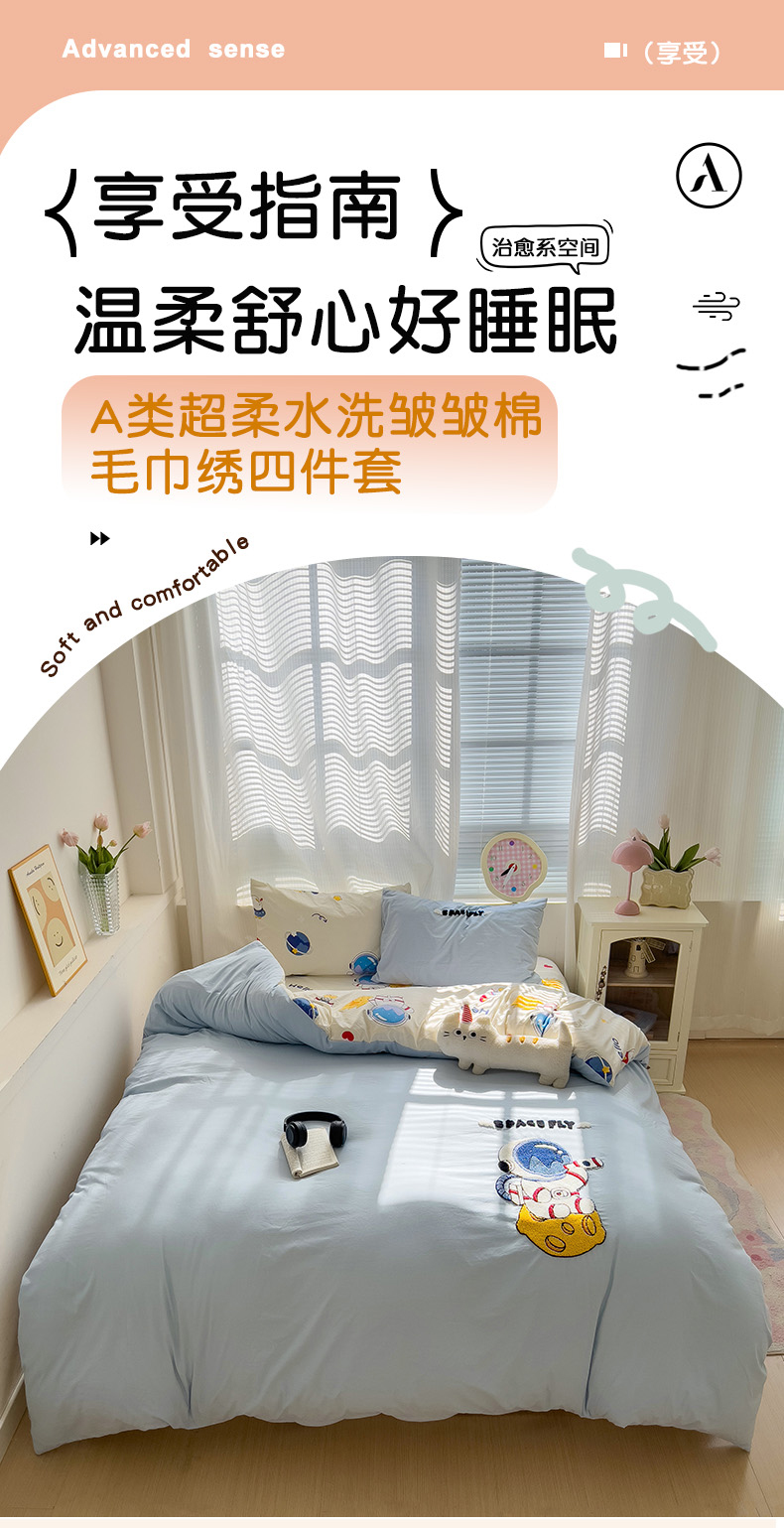 当前位置: 91家纺网 > 商品网购 > 床品套件 > 四件套 > 奈颜 2025新款高克重水洗棉毛巾绣爆款四件套 宇航员