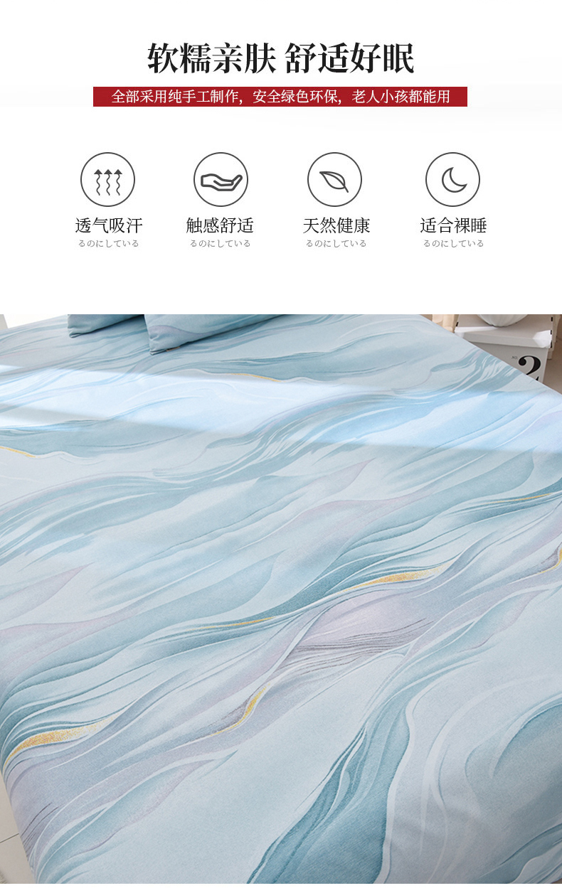 德比尔斯 2025新款印花原棉老粗布凉席软凉席 水云涧
