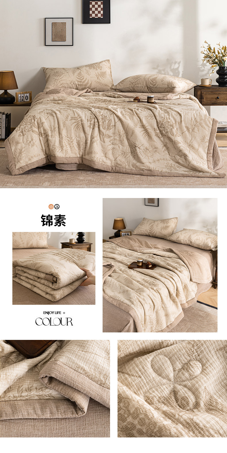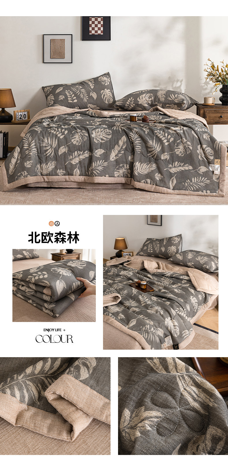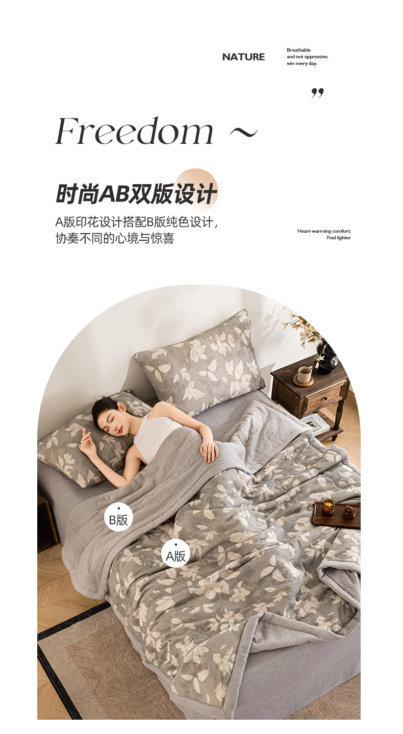 (总)吾诺家居 2026新款全棉色织提花三层纱夏被夏凉被空调被-华美,波点-灰,芳菲-咖,花影-绿,简森-灰,恋恋花开,萌宝,梦幻花园-粉,梦幻花园-灰,太阳花,藤叶-咖,香水繁花-绿