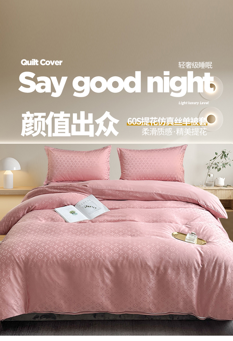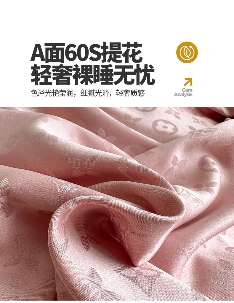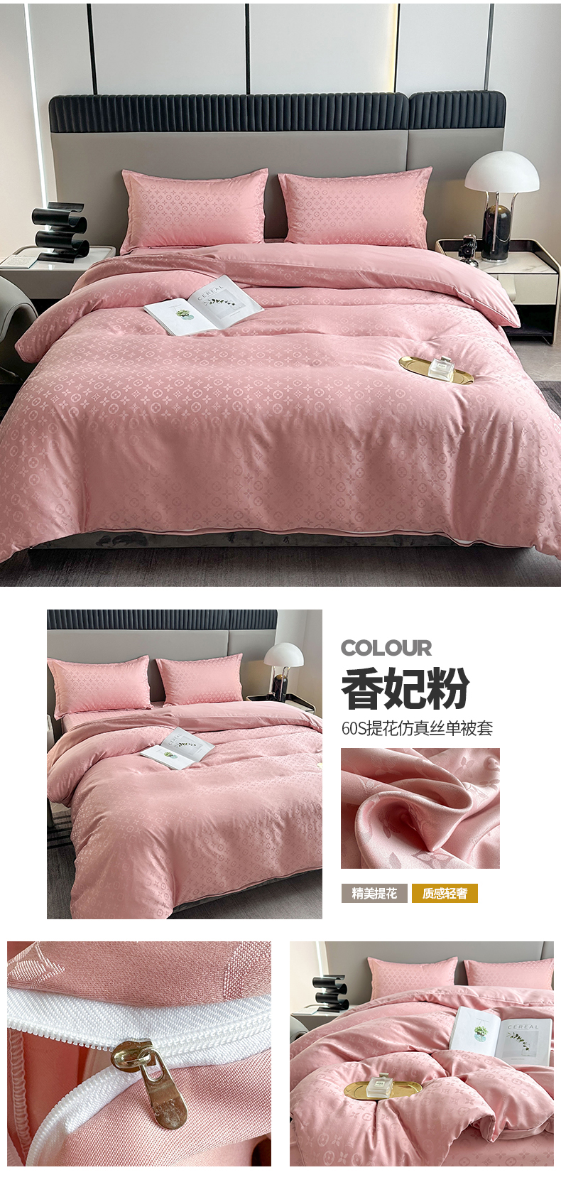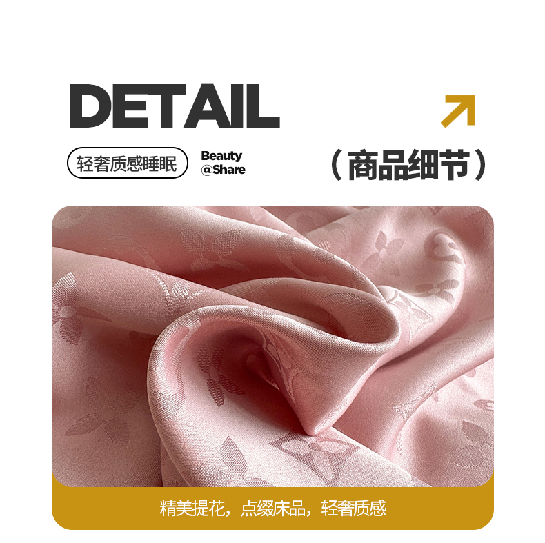 商品名称:云玲时尚 2025新款大牌风60S提花纯色轻奢贡缎水洗真丝单品被套 香妃粉