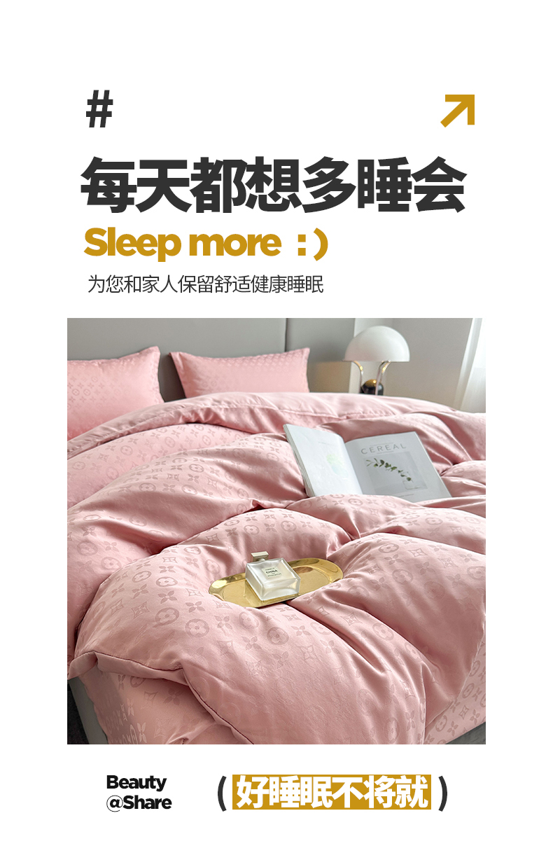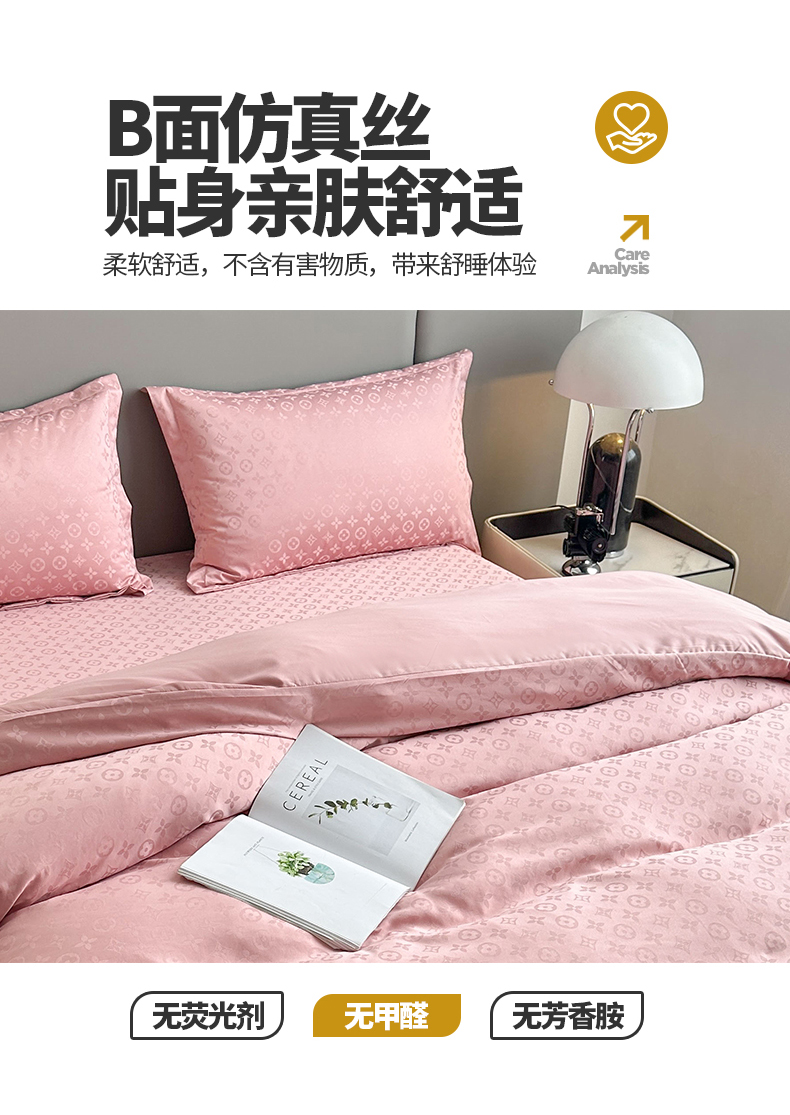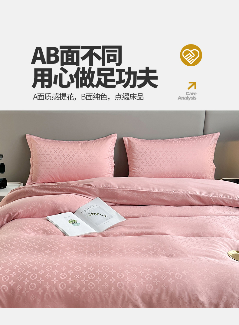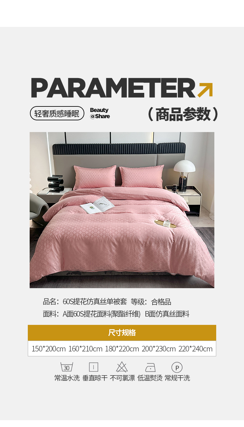 商品名称:云玲时尚 2025新款大牌风60S提花纯色轻奢贡缎水洗真丝单品被套 香妃粉