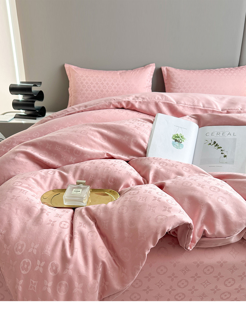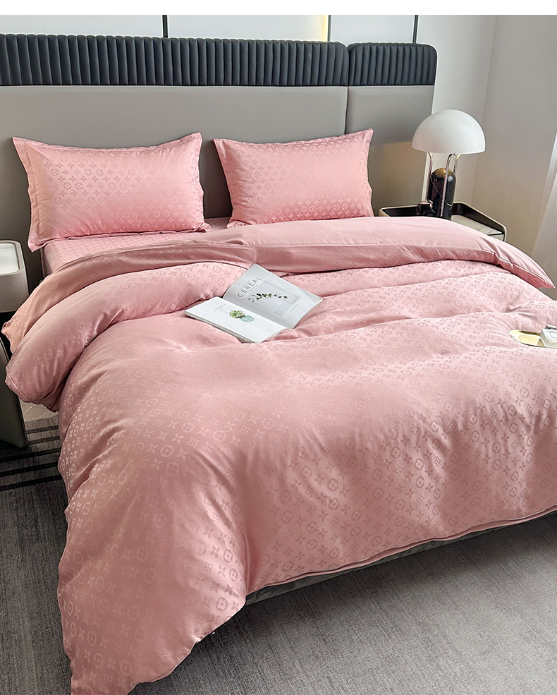 云玲时尚 2025新款大牌风60S提花纯色轻奢贡缎水洗真丝单品被套 香妃粉