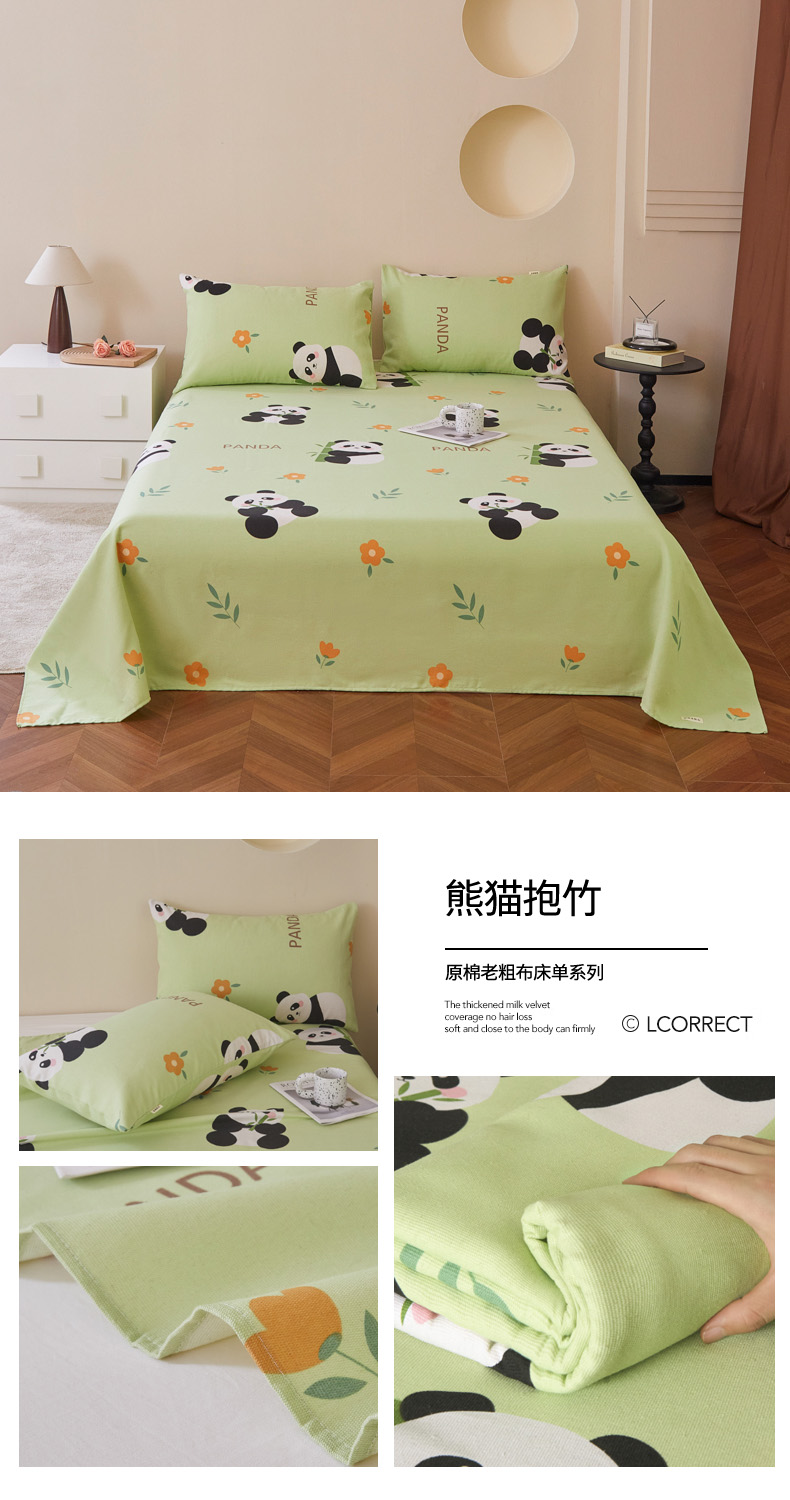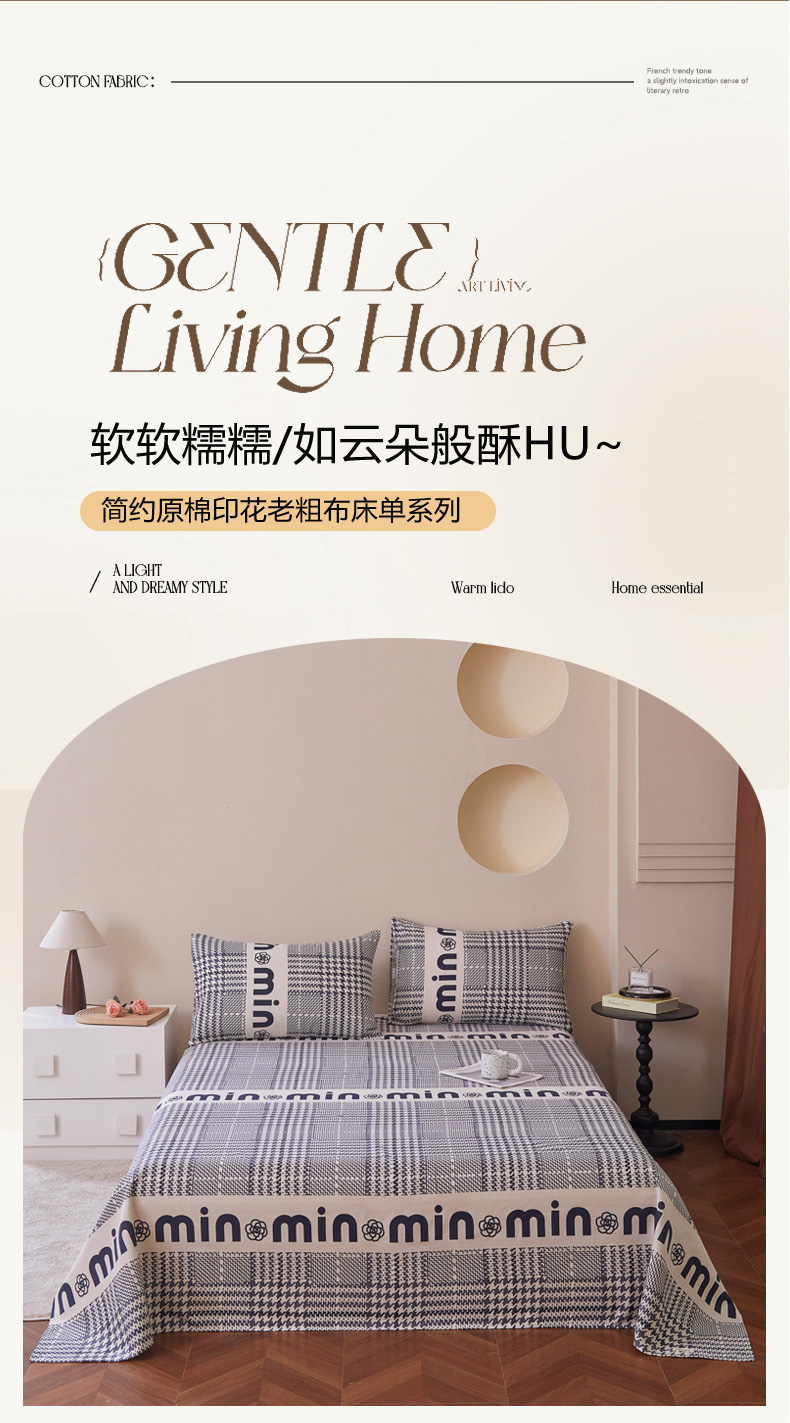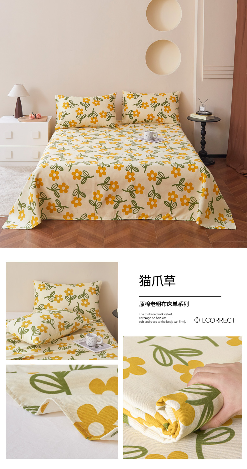 绒艺席业 2025新款简约原棉印花老粗布床单 山茶花