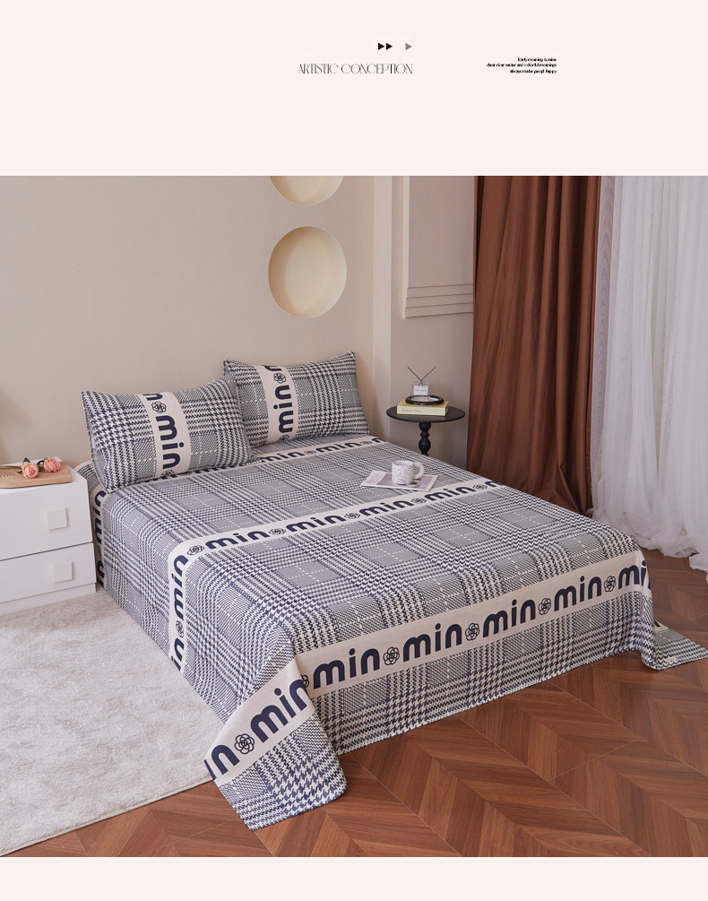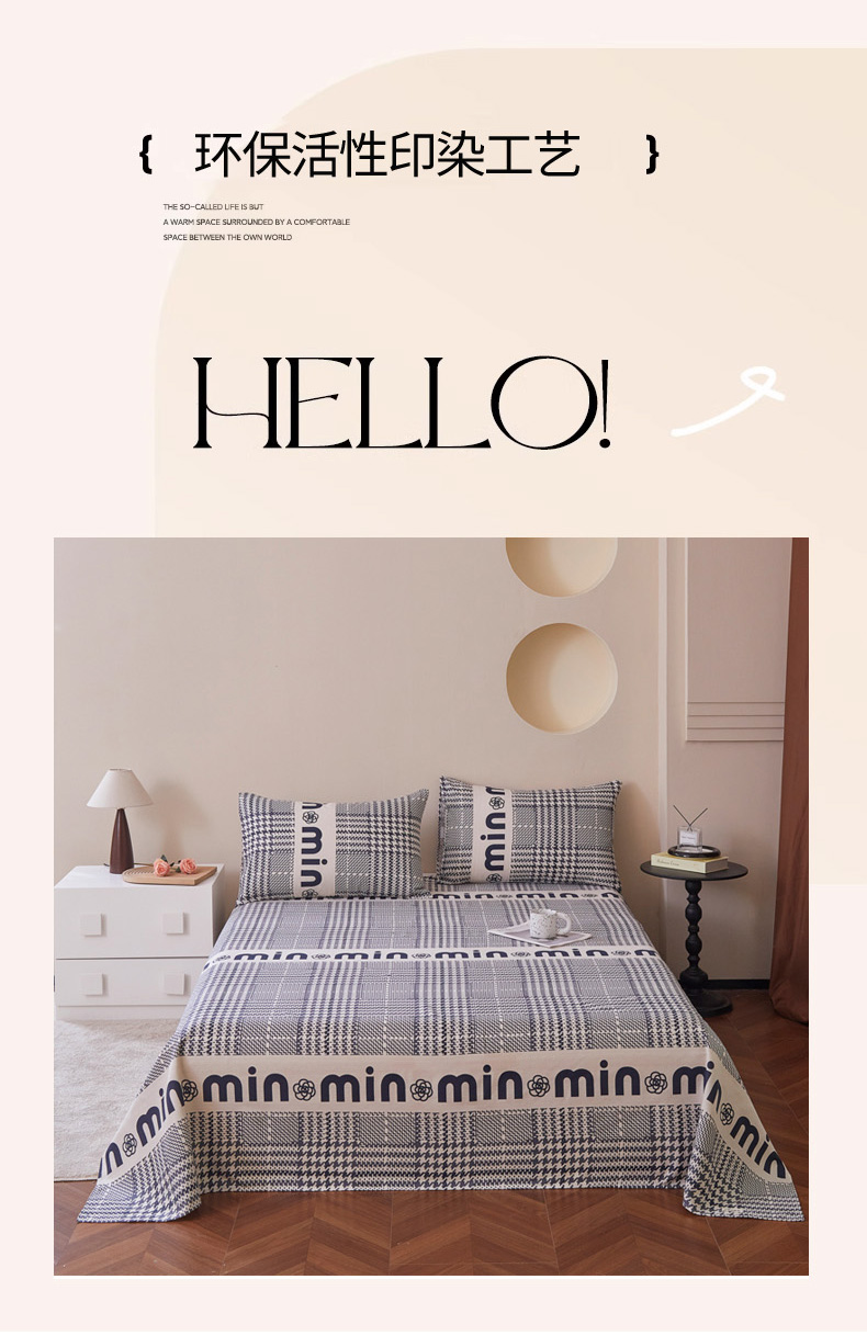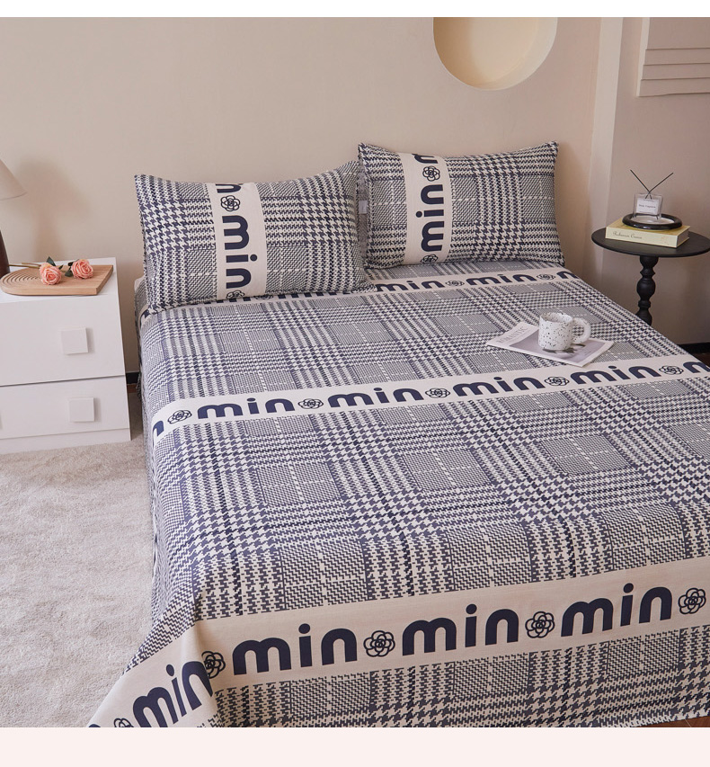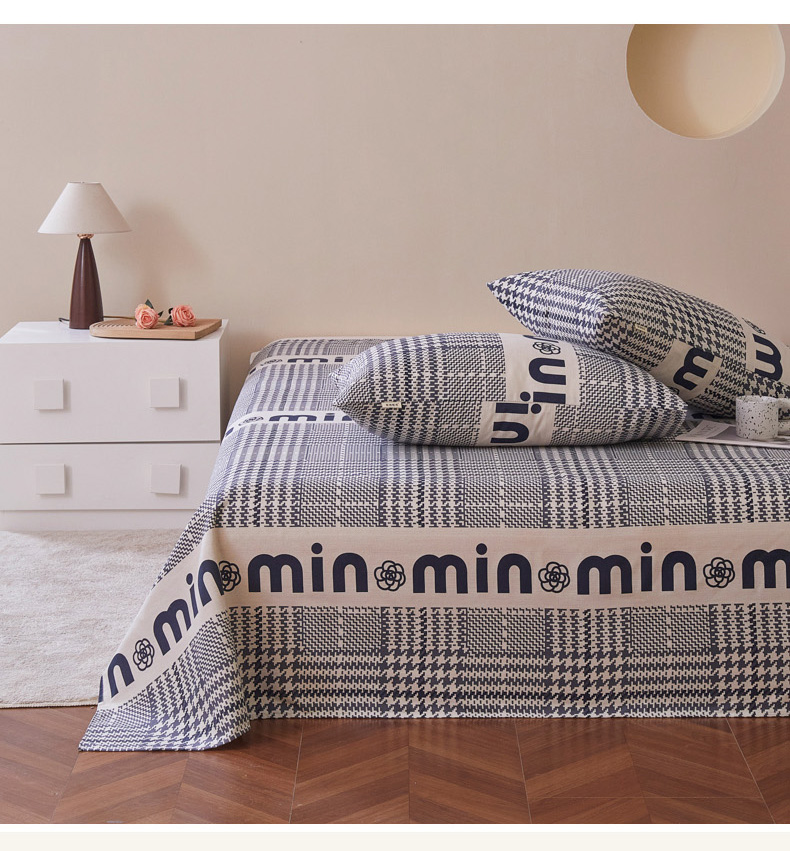 绒艺席业 2025新款简约原棉印花老粗布床单 山茶花