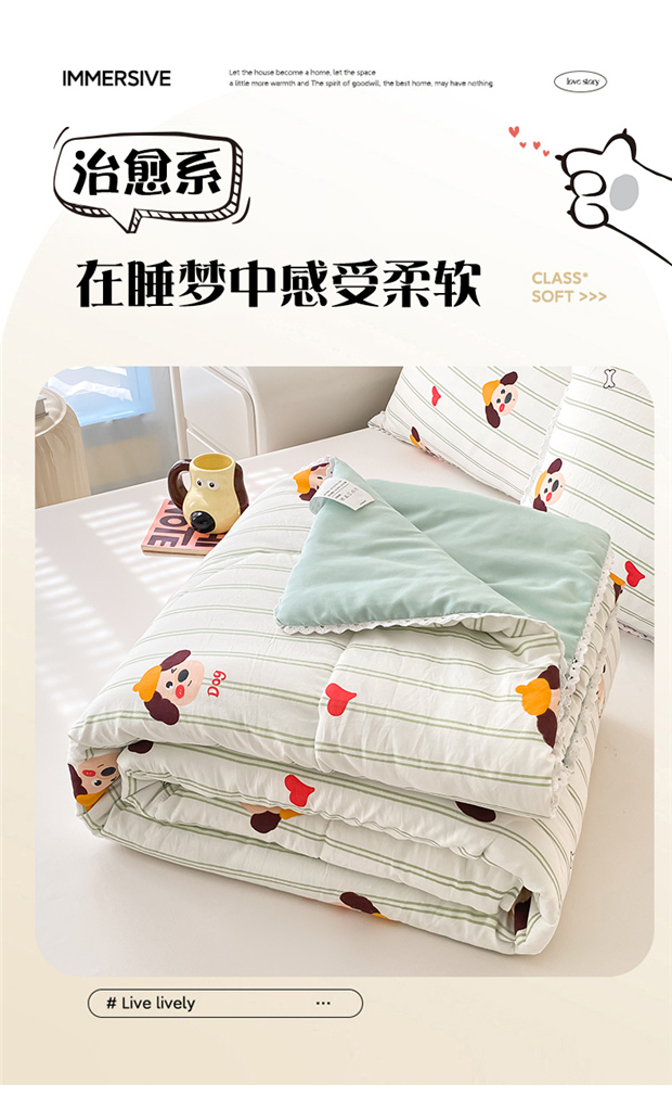 佰亿莱 2025春夏新款水洗棉羽丝绒小花边夏被夏凉被空调被 爱心修狗