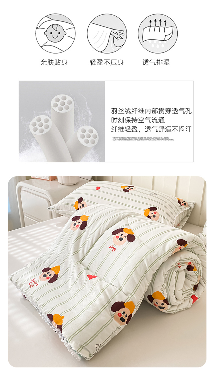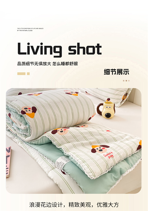 商品名称:佰亿莱 2025春夏新款水洗棉羽丝绒小花边夏被夏凉被空调被 爱心修狗