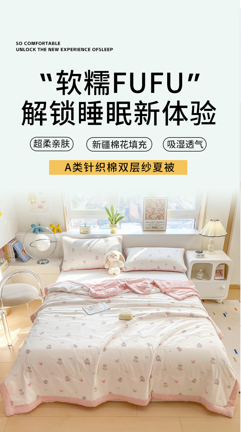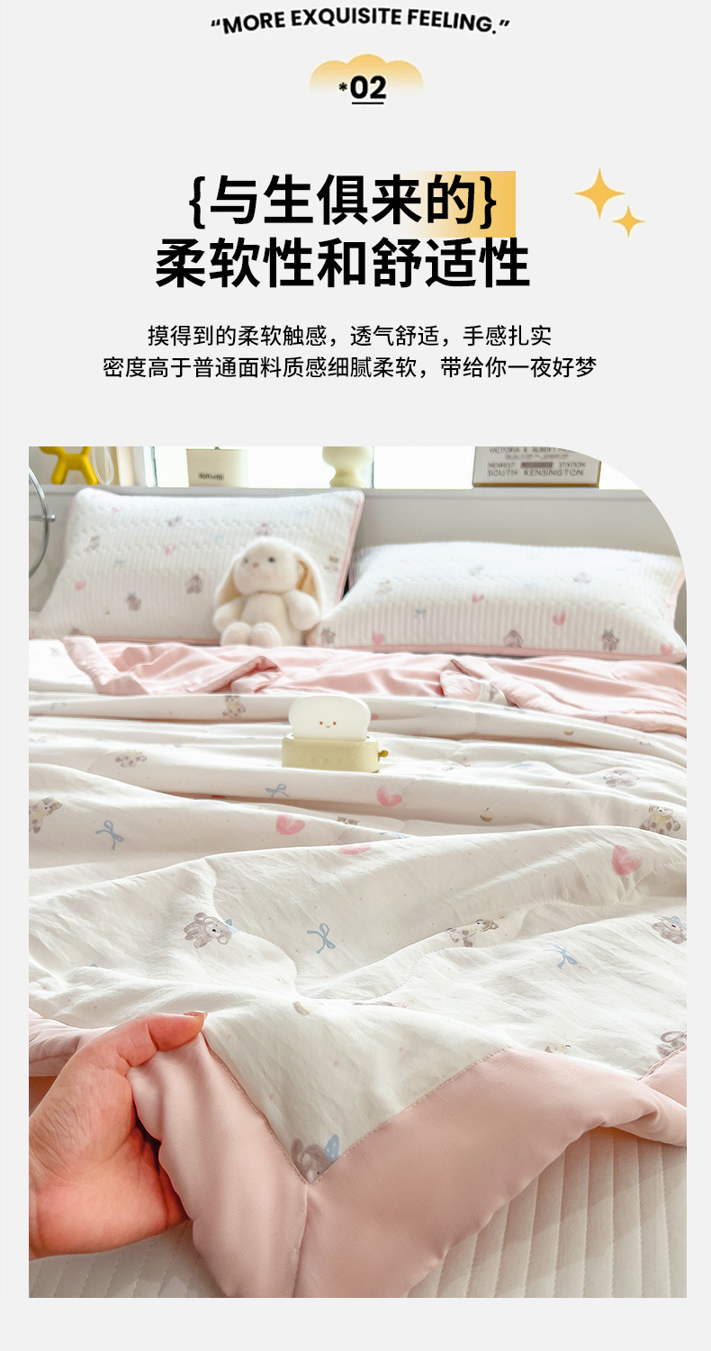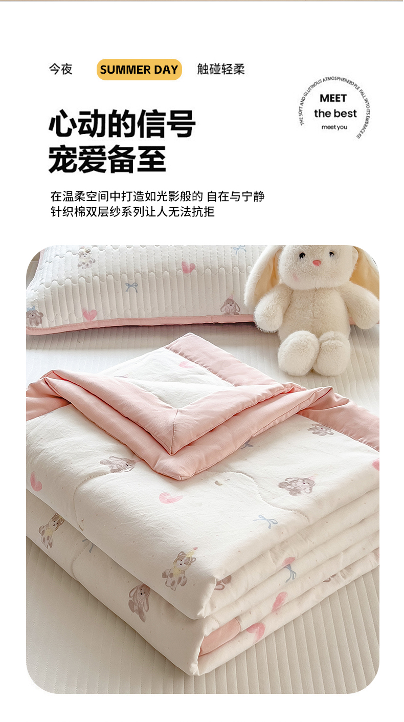 • 91家纺网 家纺一手货源 找家纺 慕木 2025春夏新款双层纱针织棉夏被夏凉被空调被 爱心熊