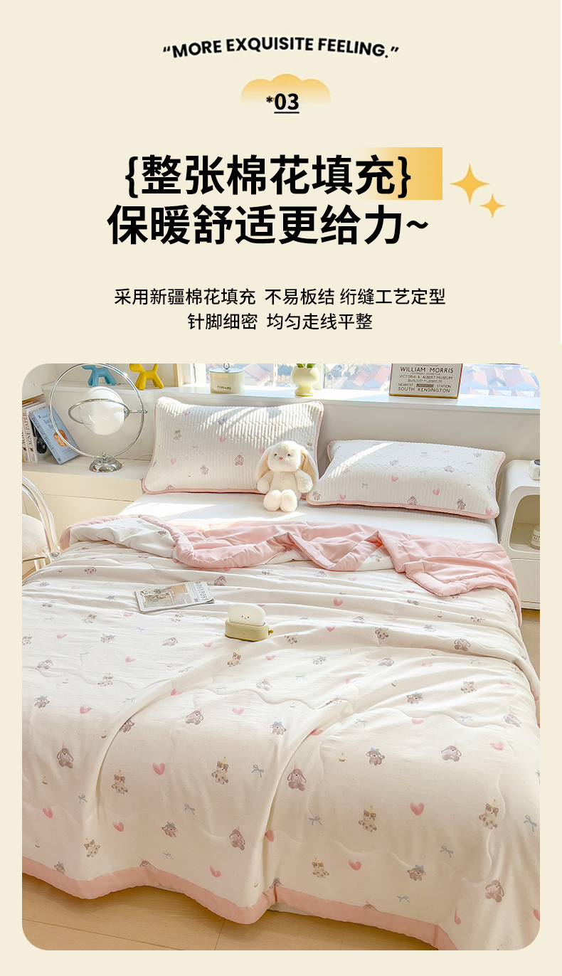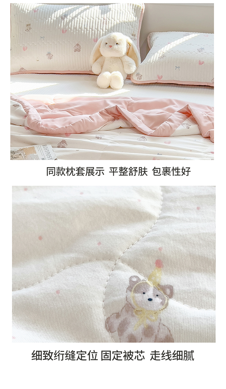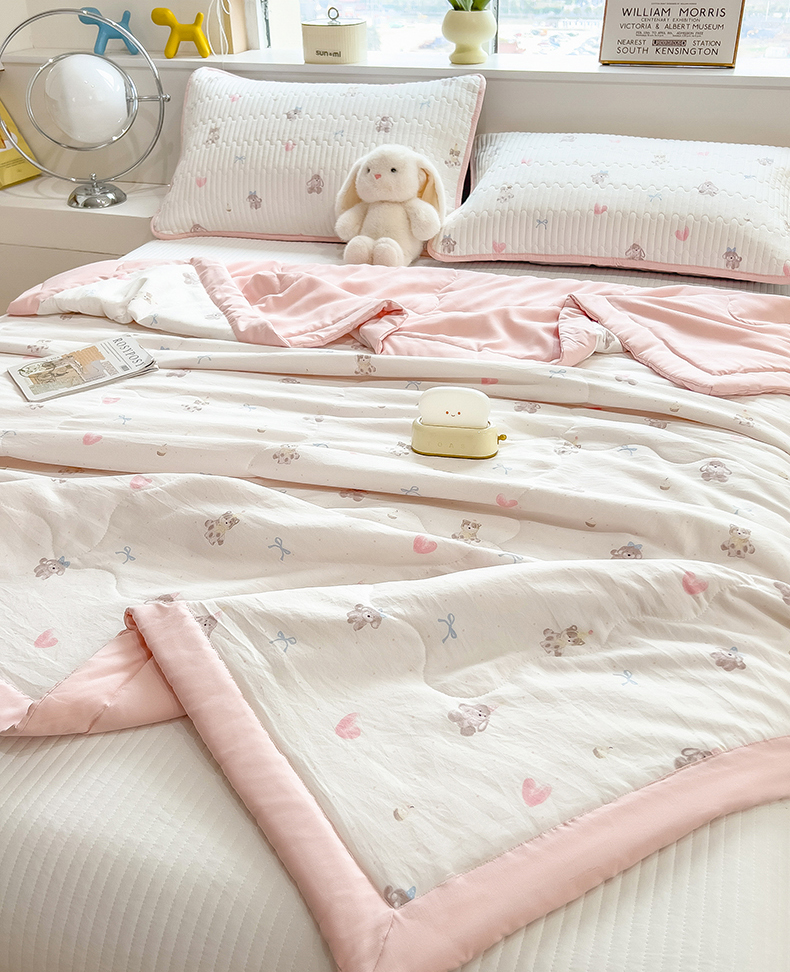 • 91家纺网 家纺一手货源 找家纺 慕木 2025春夏新款双层纱针织棉夏被夏凉被空调被 爱心熊