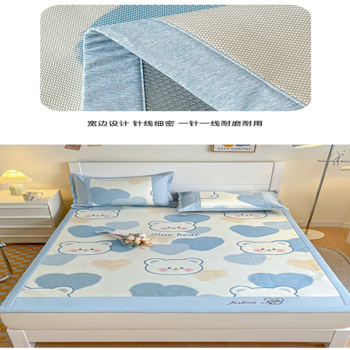 (总)2025新款印花冰藤凉席-学生款,杯具熊,冰块蓝,粉熊猫,可哒鸭,萝卜兔,太空人,小兰花,小企鹅