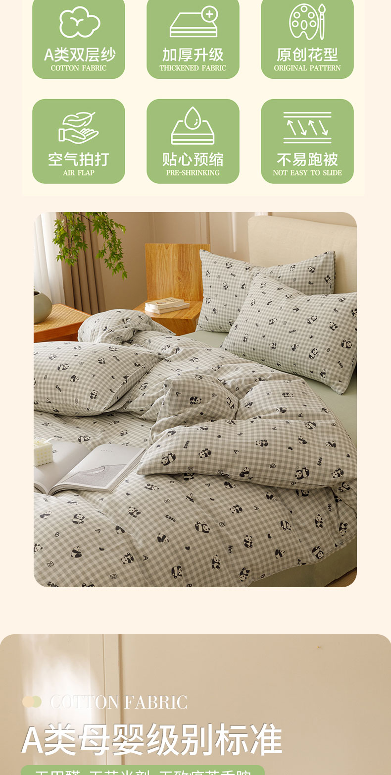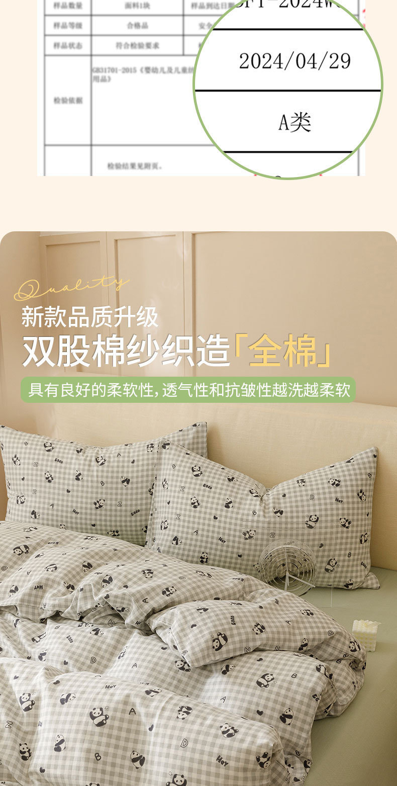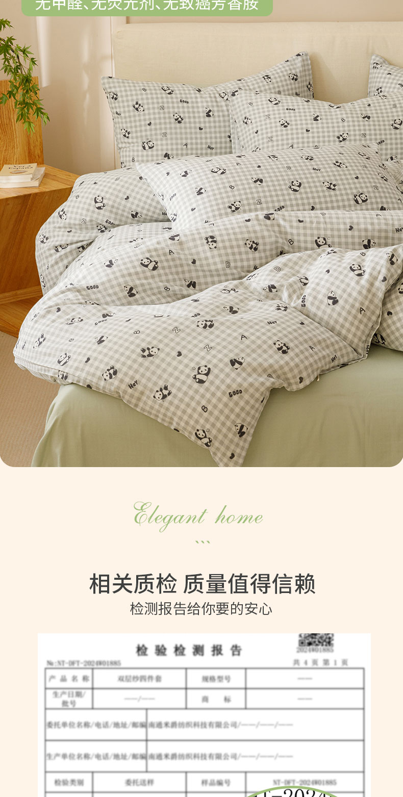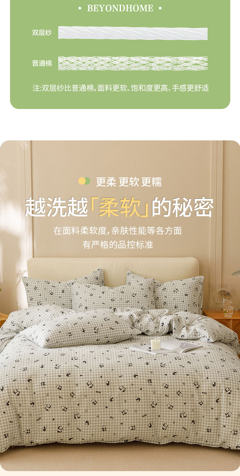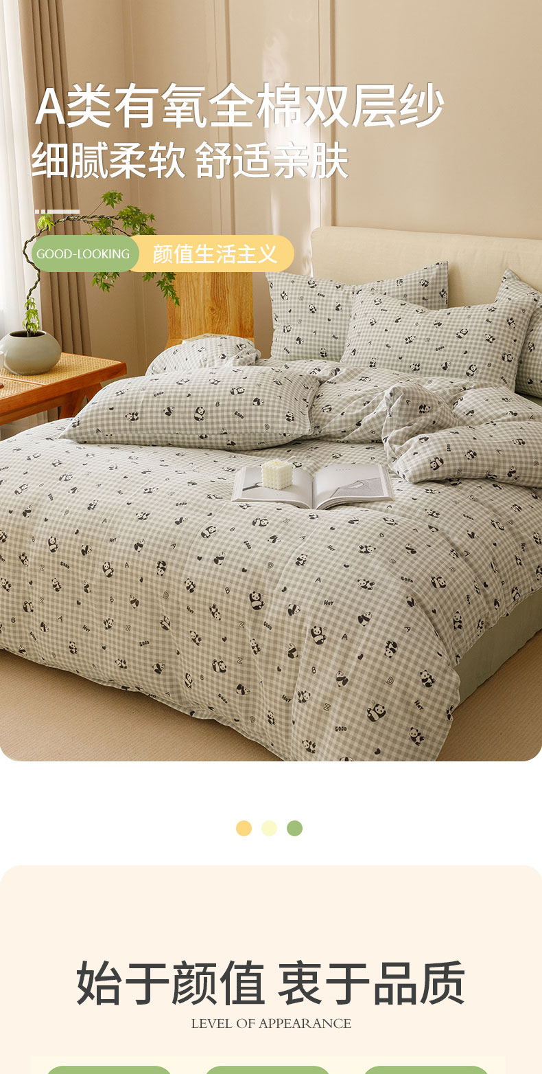商品名称:瑞米家居 2024新款亲肤舒适A类双层纱四件套 格子熊猫