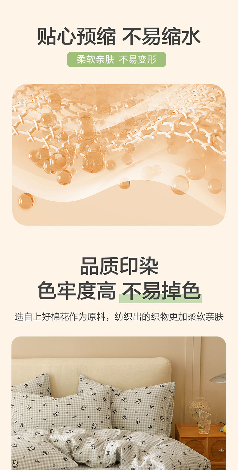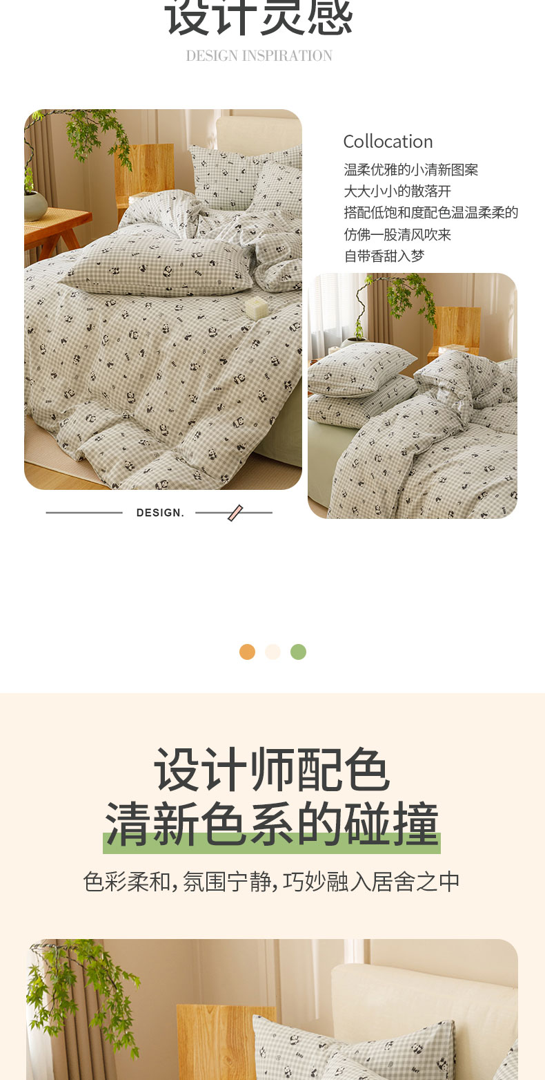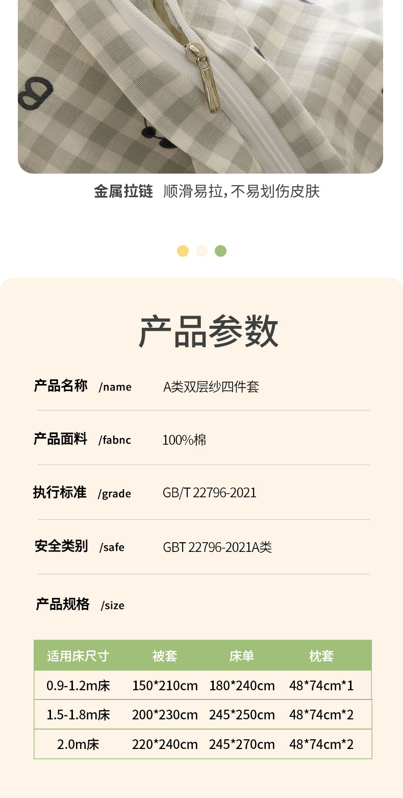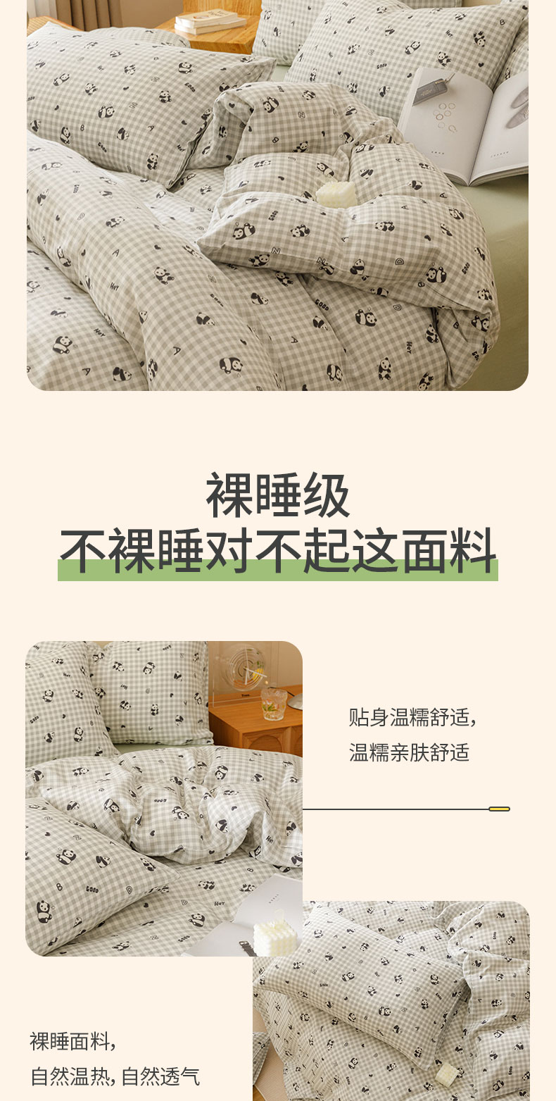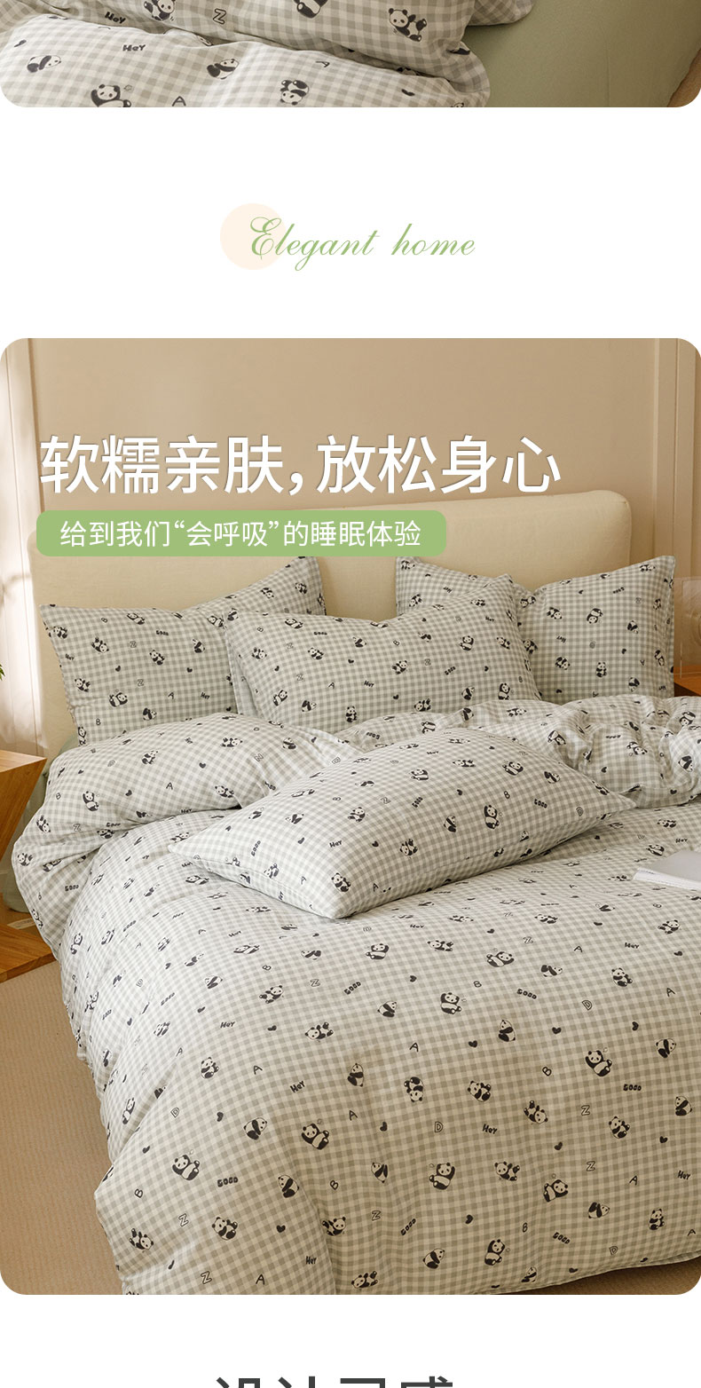 商品名称:瑞米家居 2024新款亲肤舒适A类双层纱四件套 格子熊猫