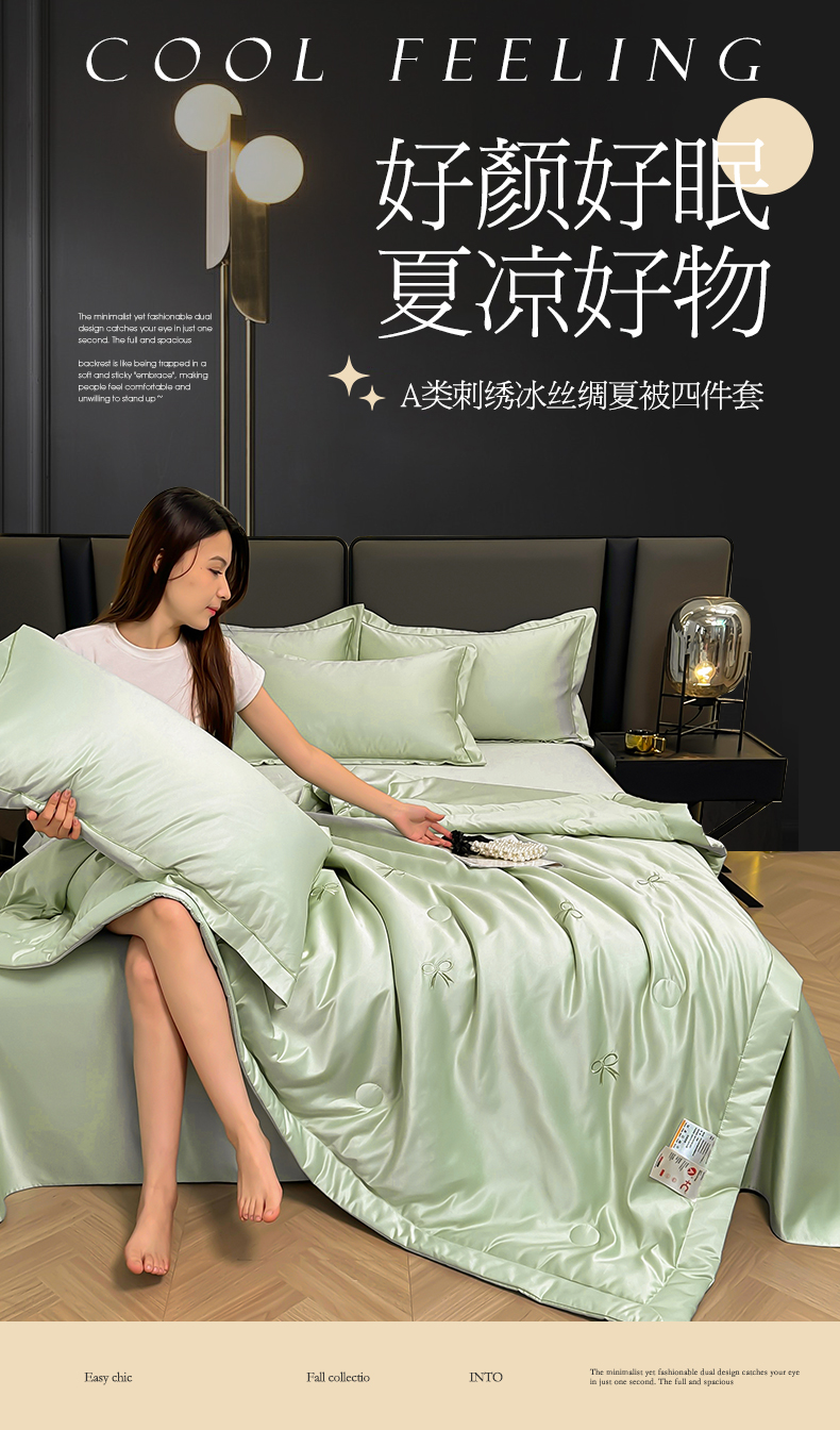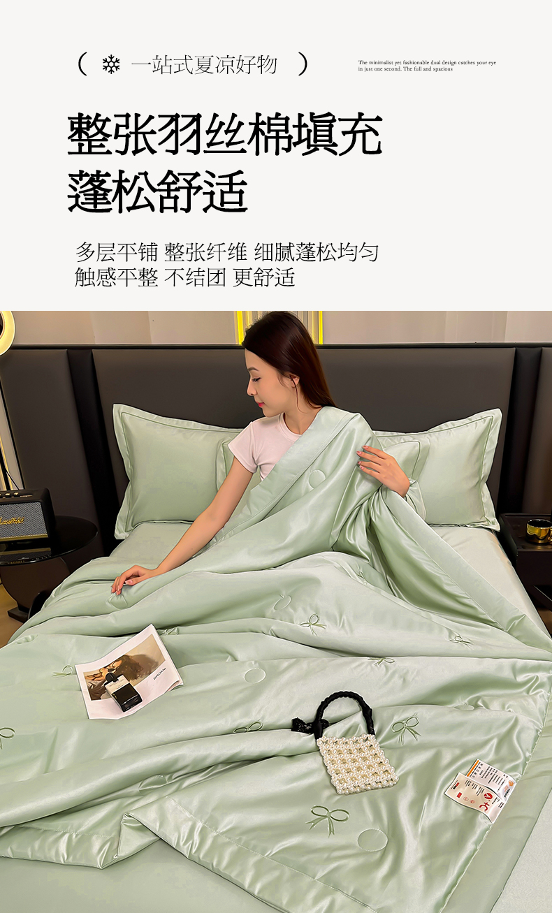 当前位置: 91家纺网 > 商品网购 > 床品套件 > 四件套 > 全棉普通四件套 > 满羽家纺 2025新款水洗冰丝刺绣夏被四件套 蝴蝶结绿