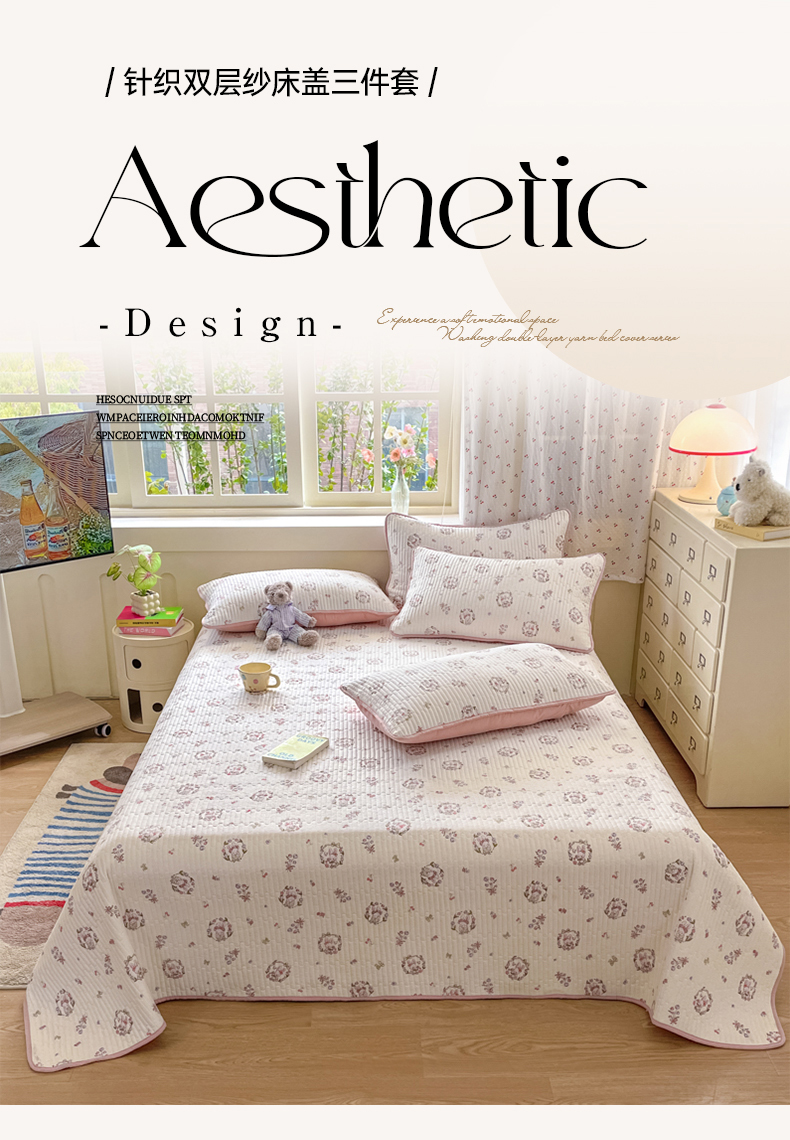 商品名称:857家居 2025新款针织双层纱床盖三件套 梦乐