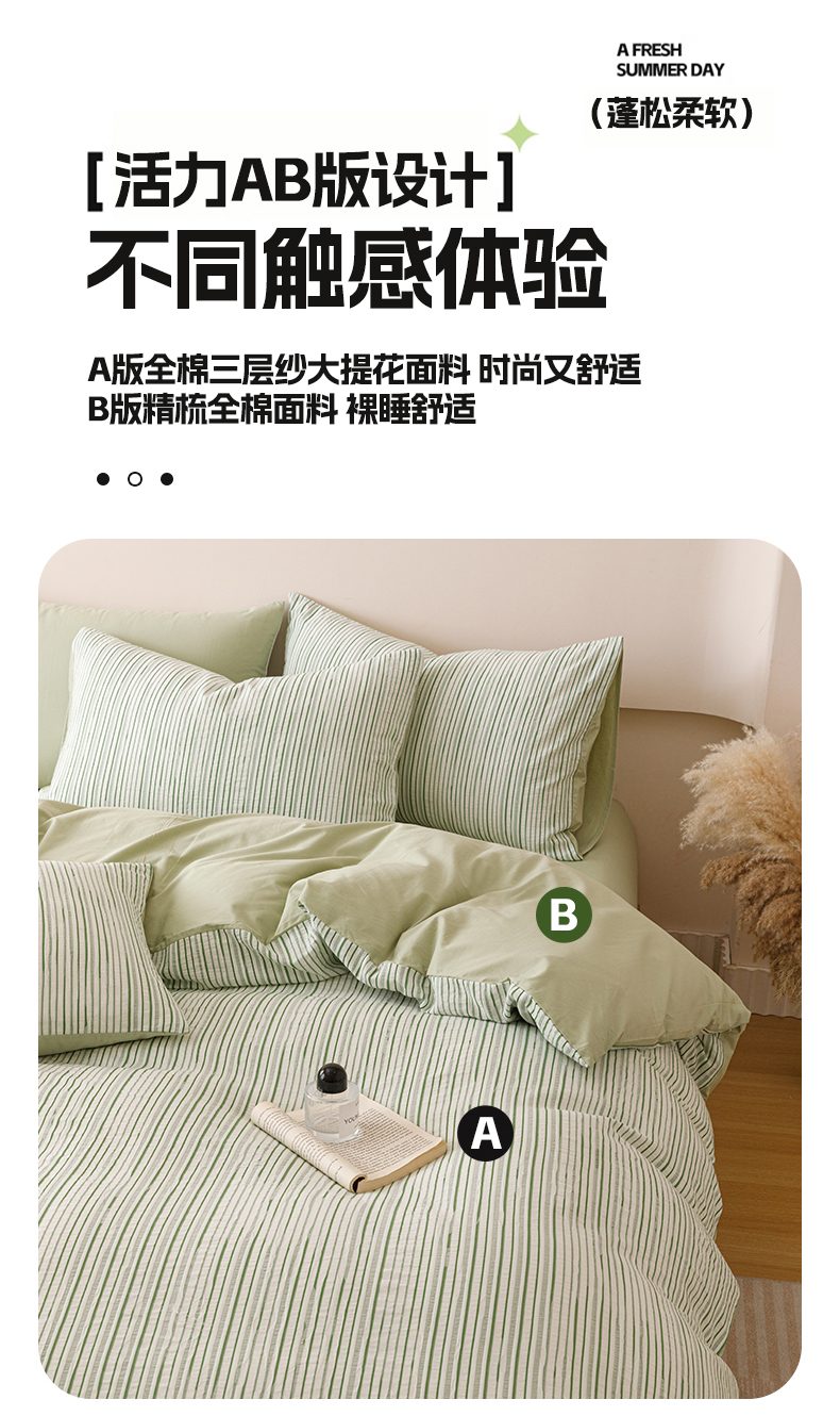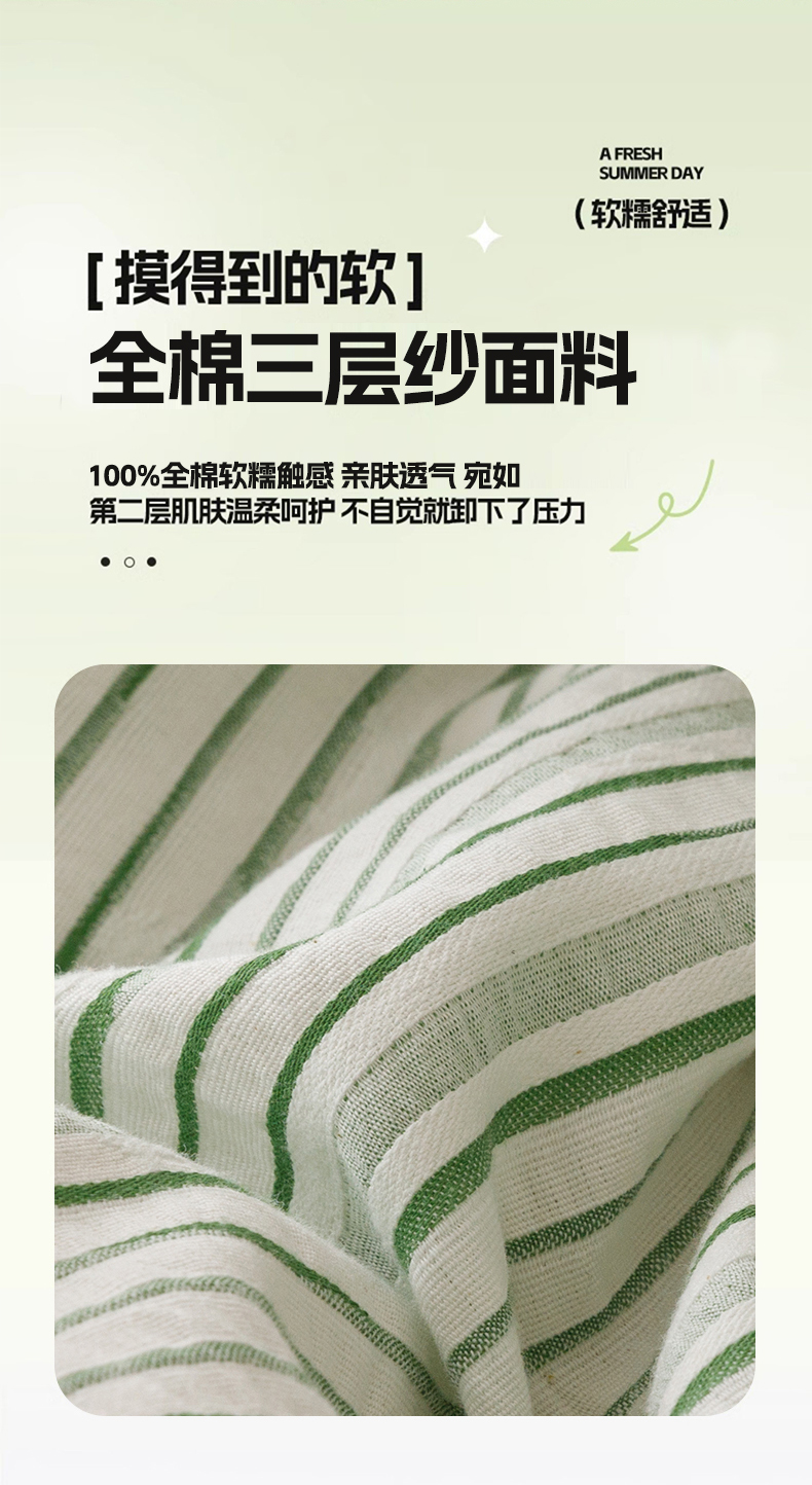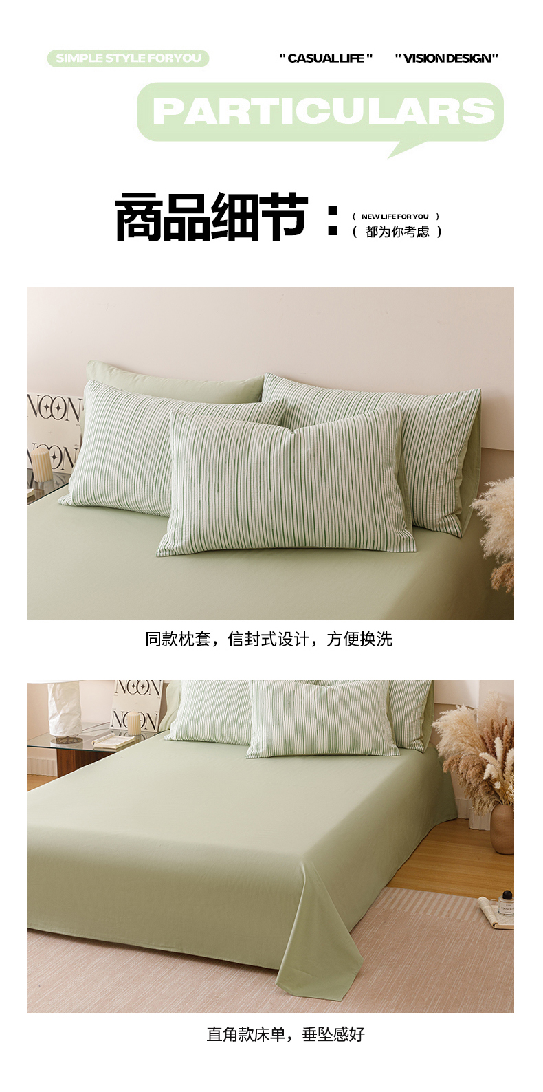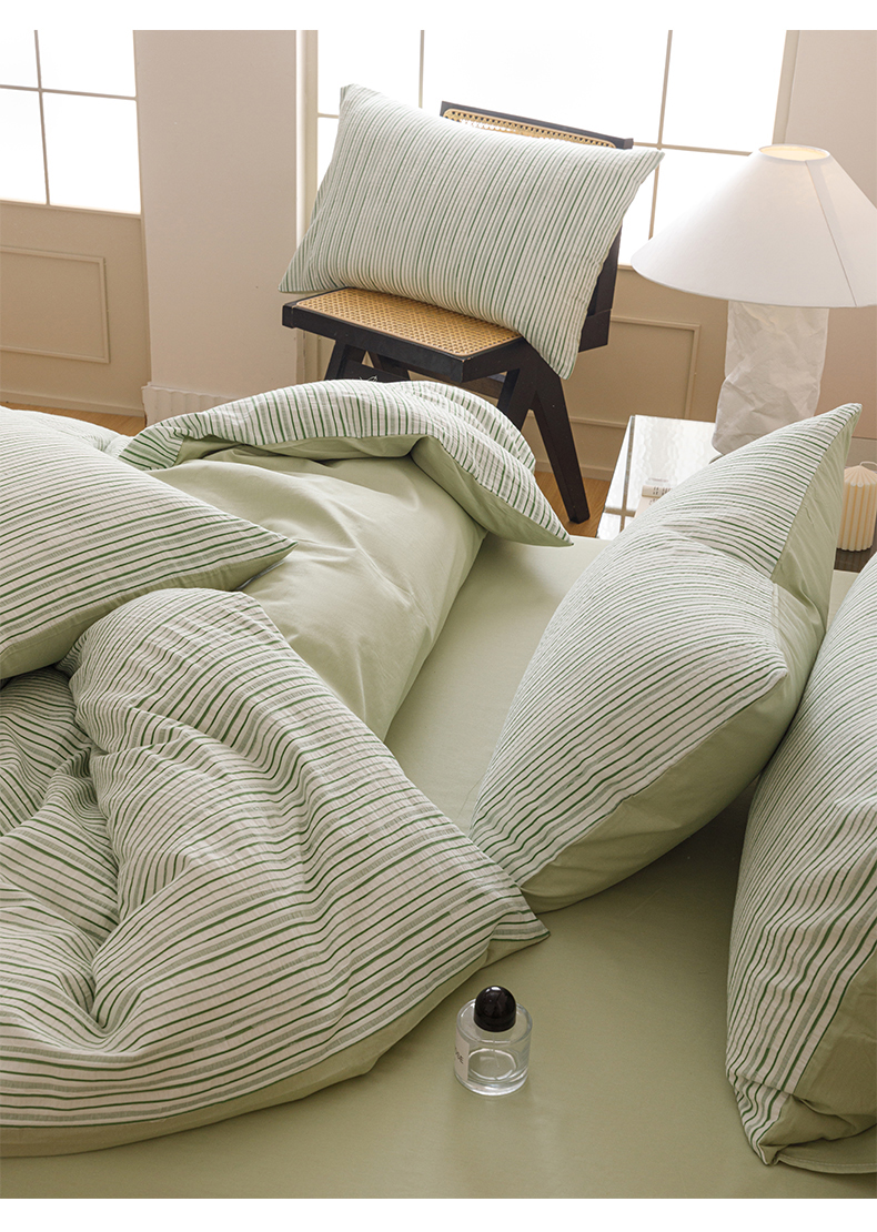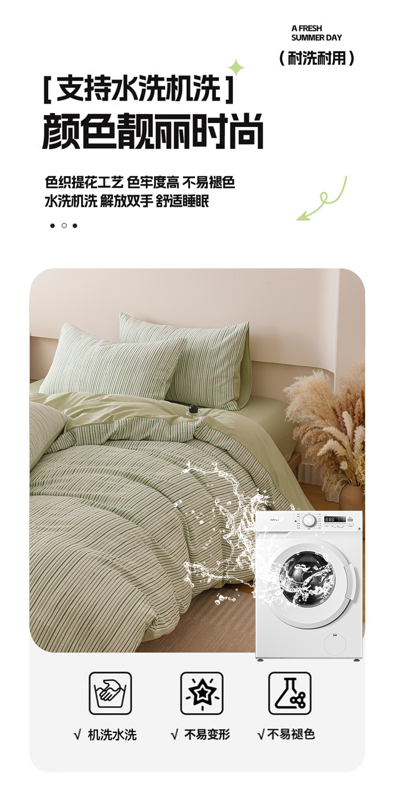 商品名称:忆生活家纺 2025新款全棉三层纱色织大提花条纹款四件套 初恋-抹茶绿