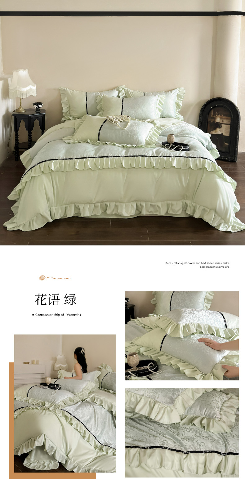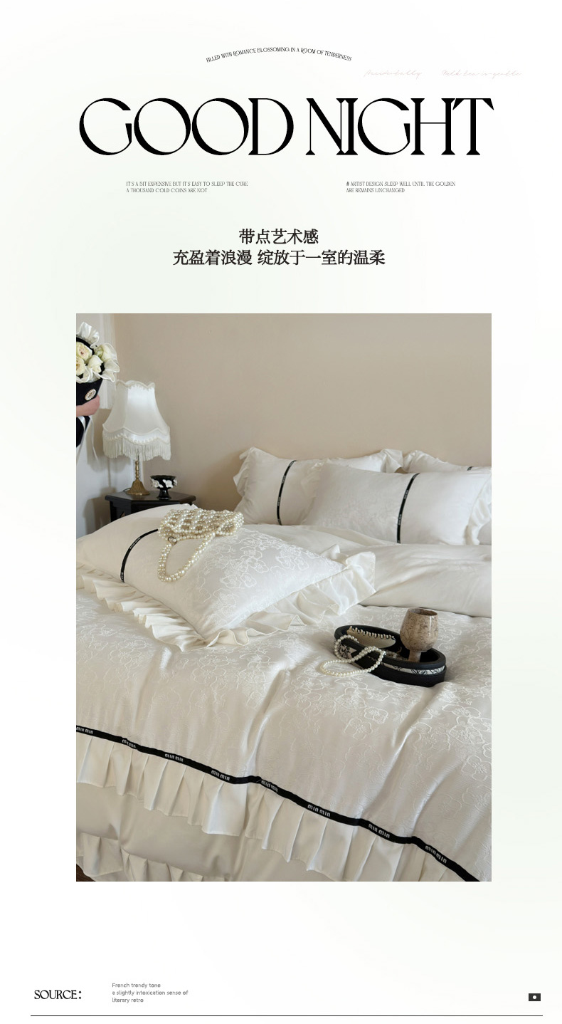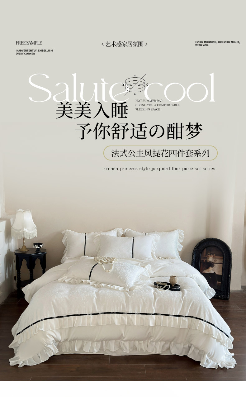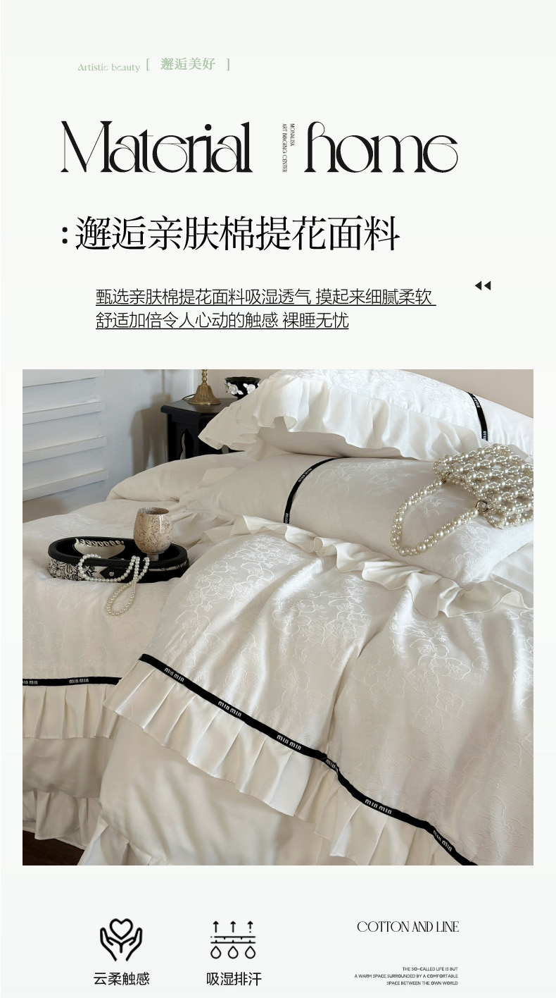 当前位置: 91家纺网 > 商品网购 > 床品套件 > 四件套 > 提花四件套 > 豪美鑫 2025新款亲肤棉法式花边四件套-花语 花语 蓝灰