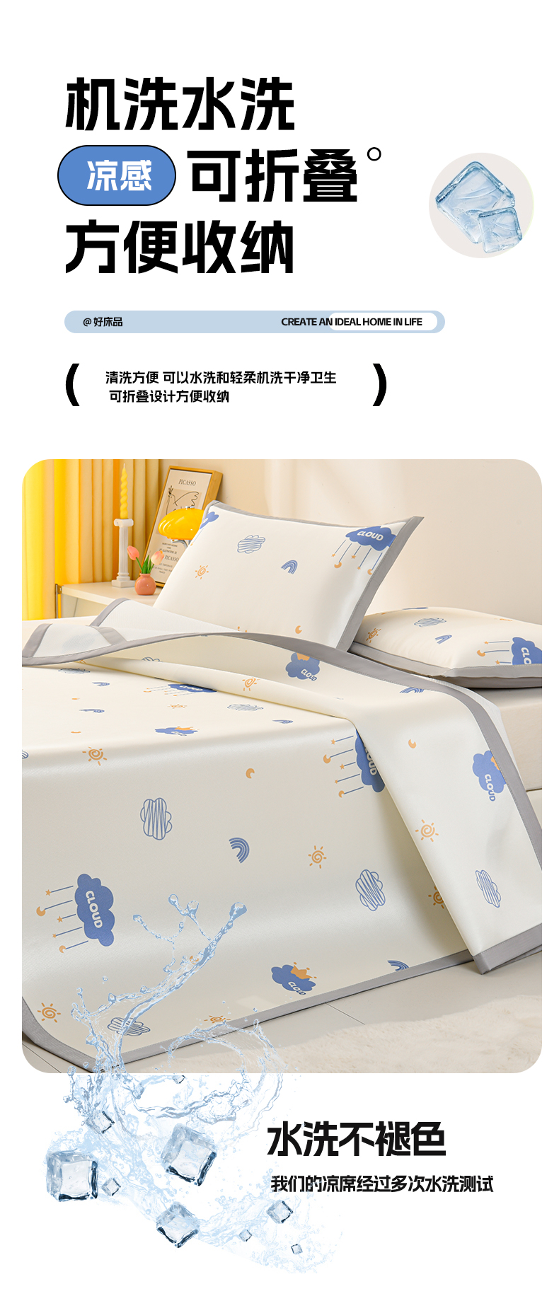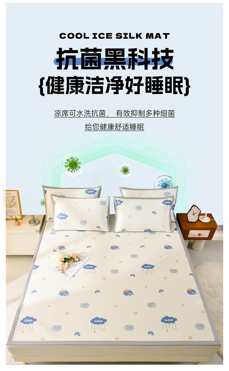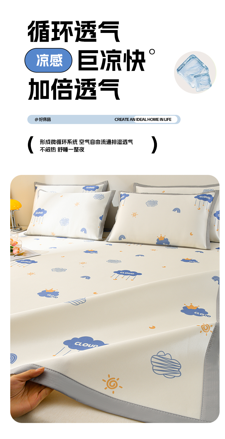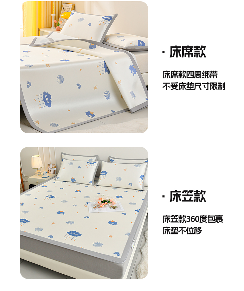 简一 2025新款A类碳光印花数码冰丝凉席系列-床笠款 蓝天白云