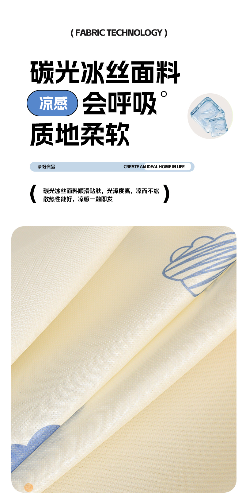 商品名称:简一 2025新款A类碳光印花数码冰丝凉席系列-床笠款 蓝天白云