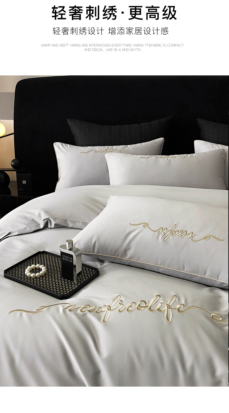 (总)禧澜庭 2024新款高支纯棉全棉斜纹四件套刺绣绣花款轻奢三件套,布鲁灰,戴妃粉,戴妃粉+魅紫,皓月白+卡其,皓月白+柔粉,魅力蓝,魅力蓝+浅灰,莺茶绿+卡其,月光灰,珠光紫