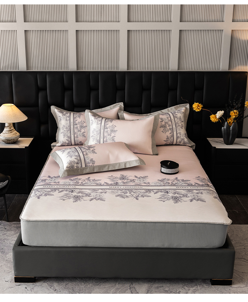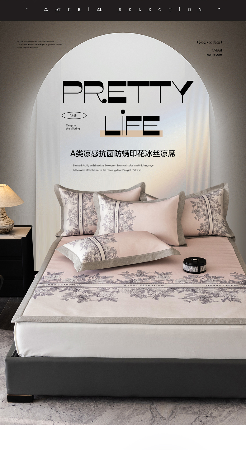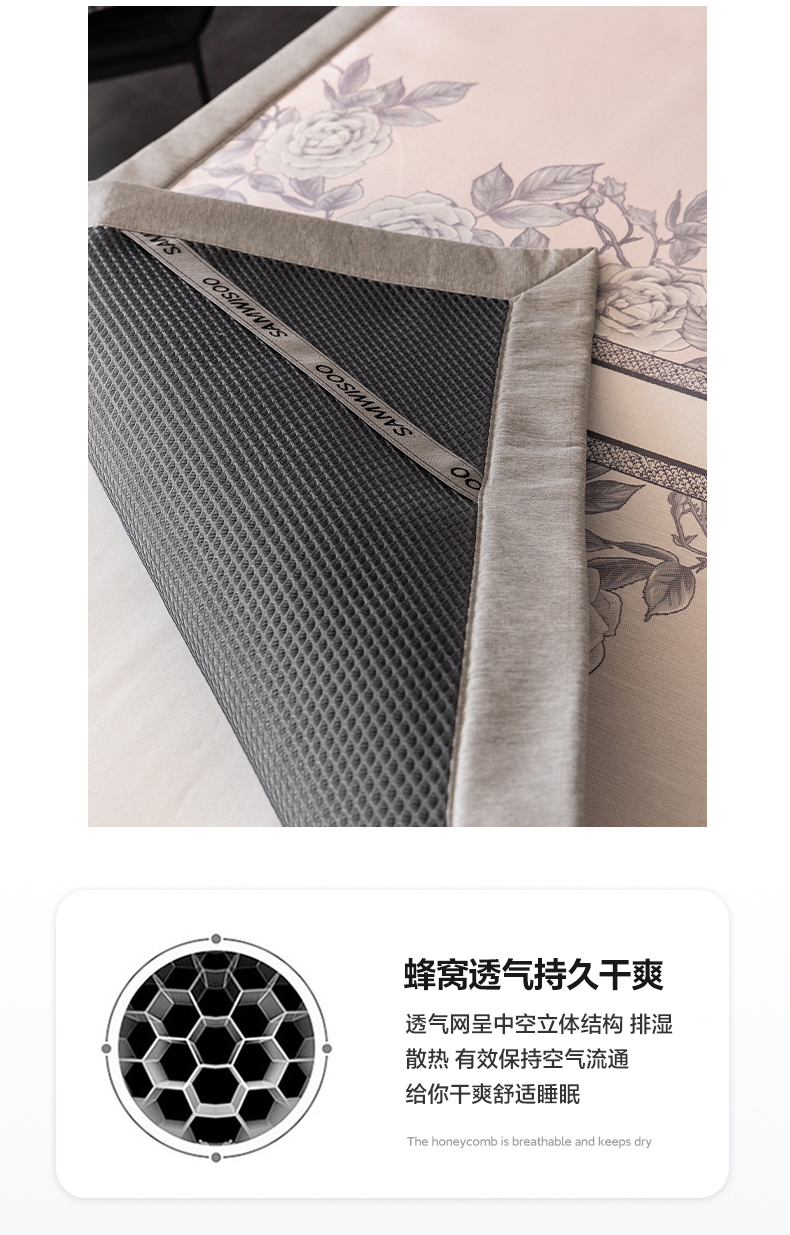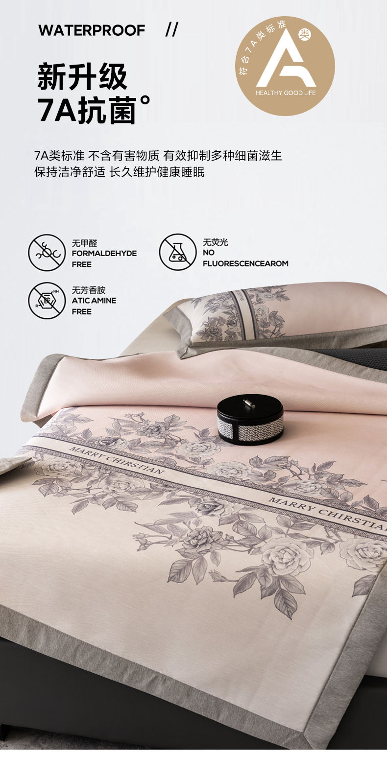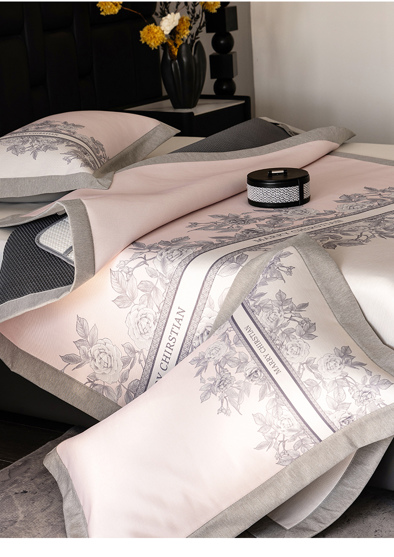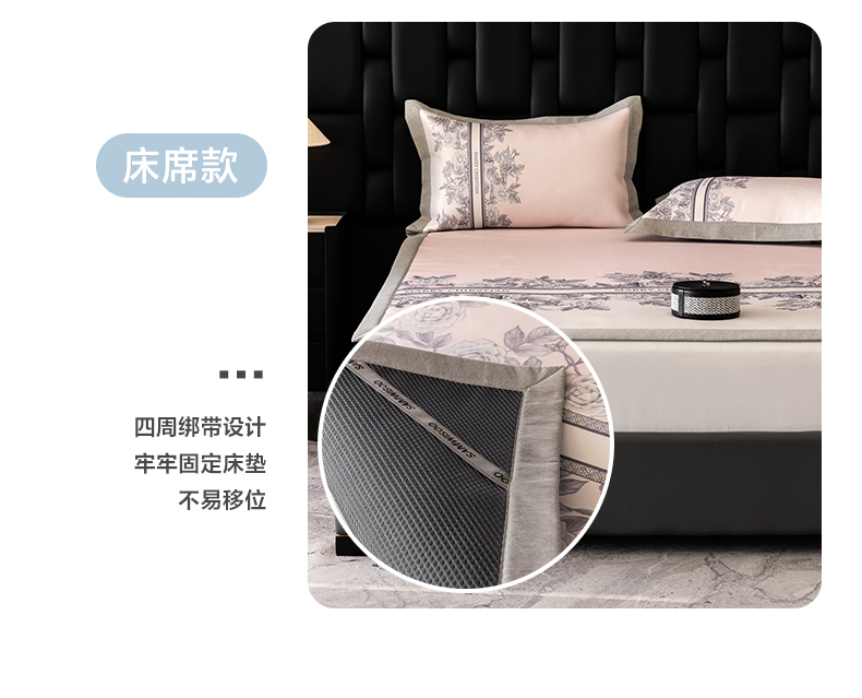 商品名称:三味舒屋2025新款凉感抗菌防螨印花冰丝养生席(新升级7A抗菌) 床席 茹伊粉 床笠