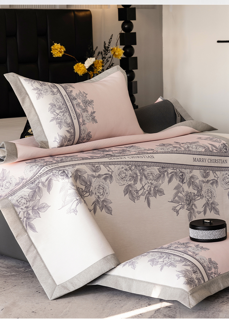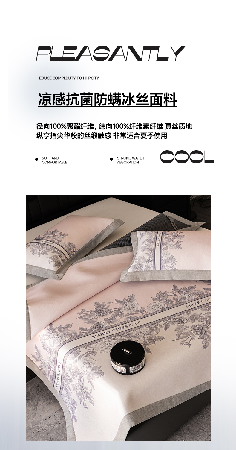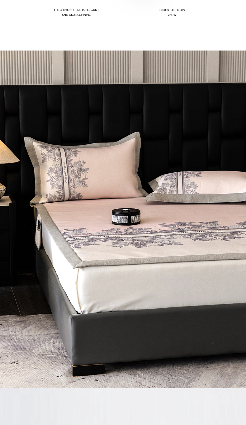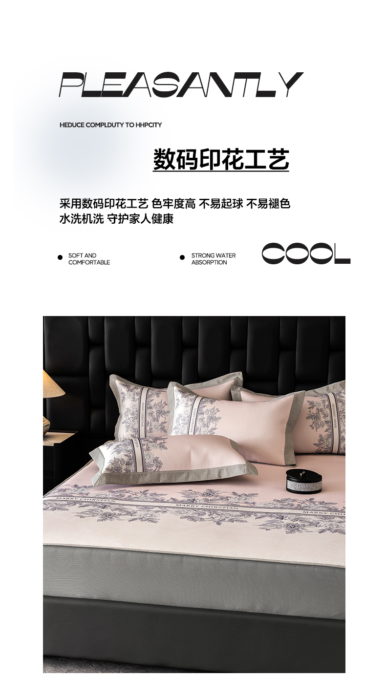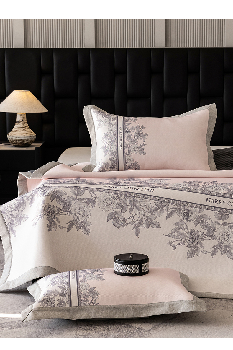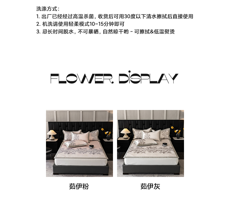 商品名称:三味舒屋2025新款凉感抗菌防螨印花冰丝养生席(新升级7A抗菌) 床席 茹伊粉 床笠