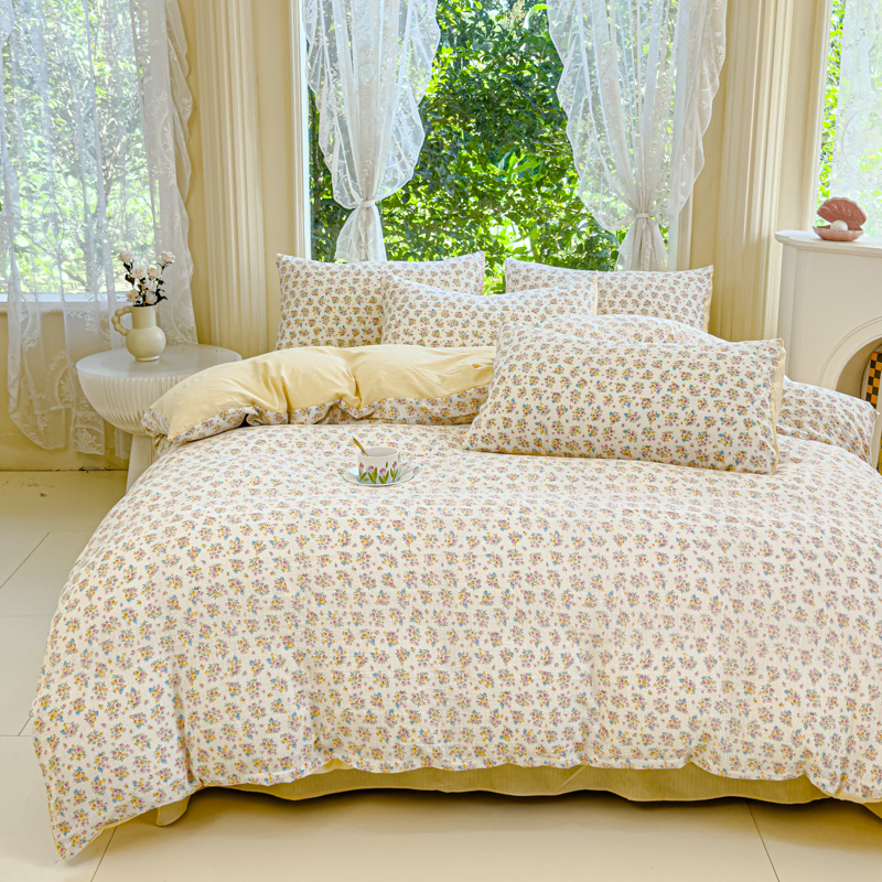 仟网汇 2025新款亲肤舒适提花小竺棉彩竹棉彩竺棉系列四件套 彩竺棉-月见