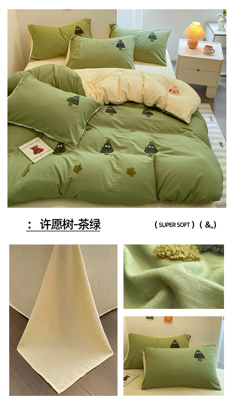 当前位置: 91家纺网 > 商品网购 > 床品套件 > 四件套 > 毛巾绣四件套 > 优卡迪家纺馆 2025新款水洗棉毛巾绣四件套(下载文件夹包含买家秀) 许愿树-茶绿