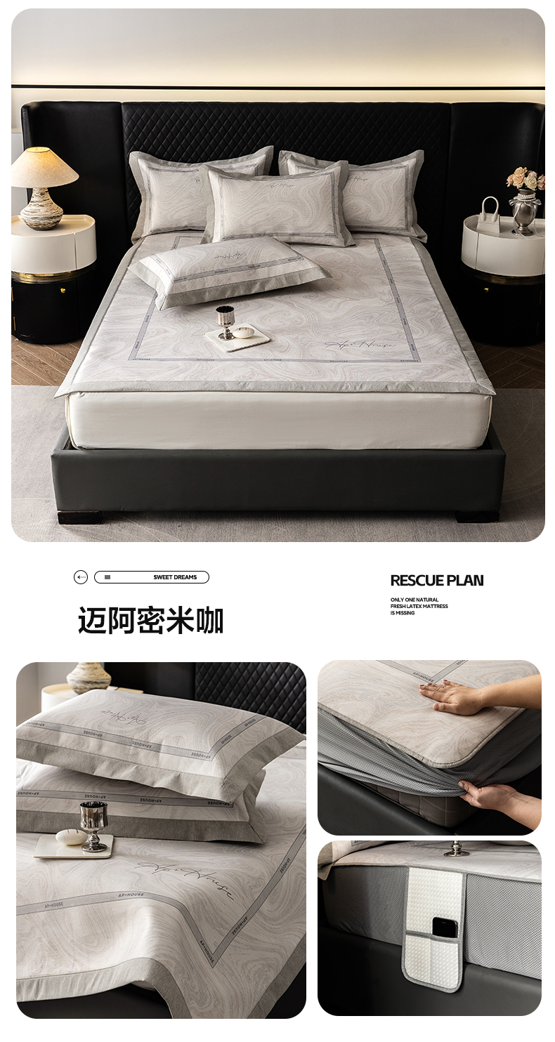 商品名称:三味舒屋2025 凉感抗菌防螨印花冰丝养生席(新升级7A抗菌 迈阿密米咖