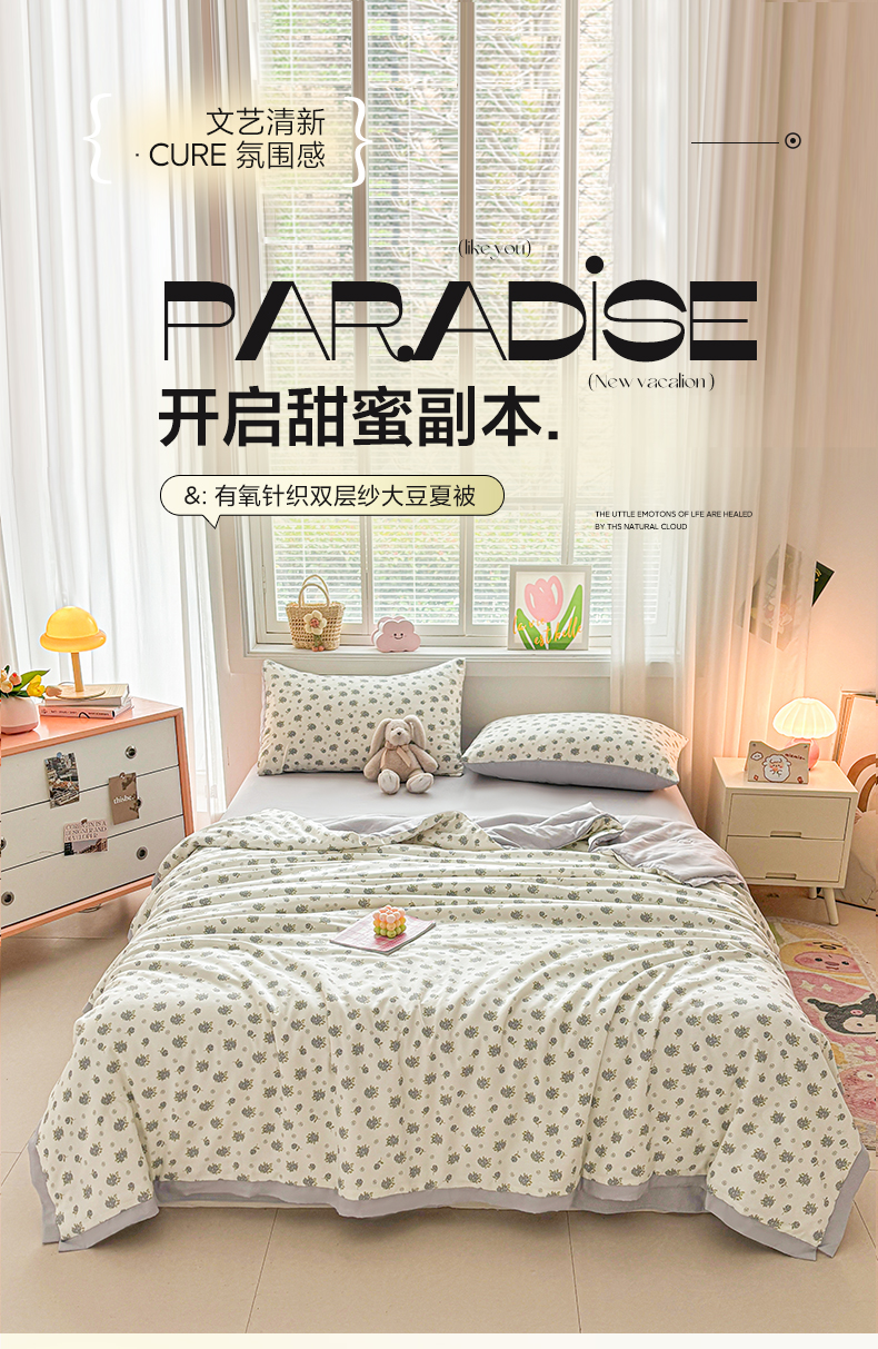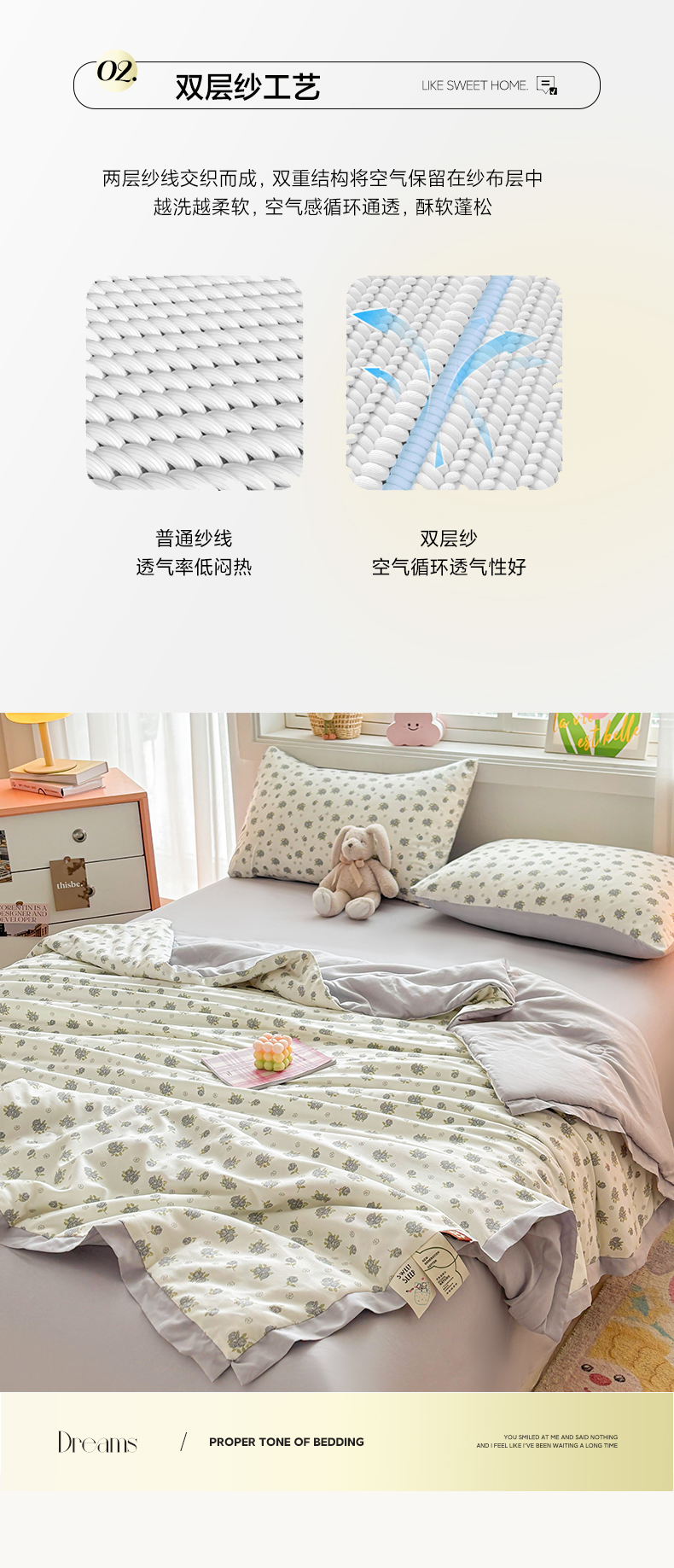 • 91家纺网 家纺一手货源 找家纺 典冠 2025新款有氧针织双层纱大豆夏被夏凉被空调被 清欢