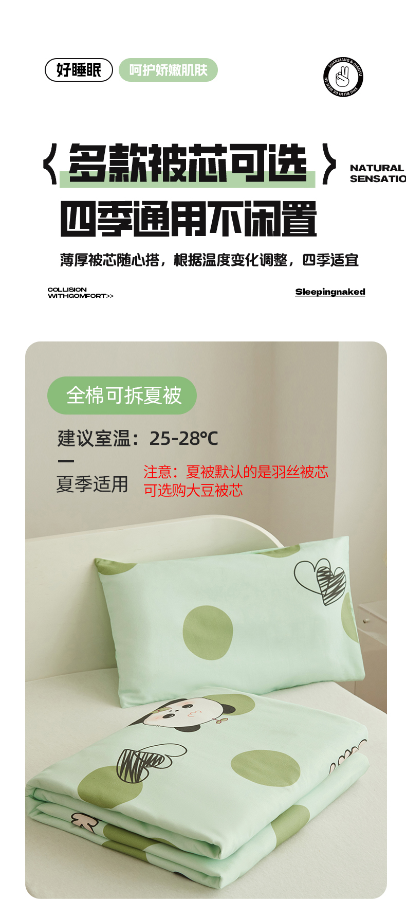商品名称:(总)艾佳宝贝 2025新款A类儿童全棉多功能单被套可拆式夏被