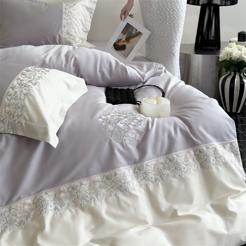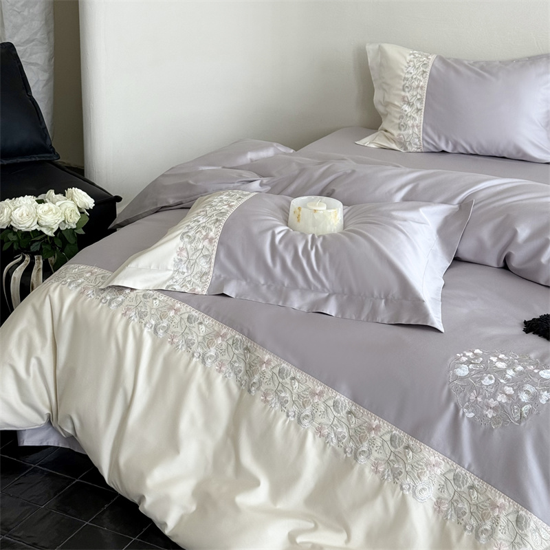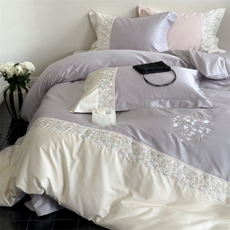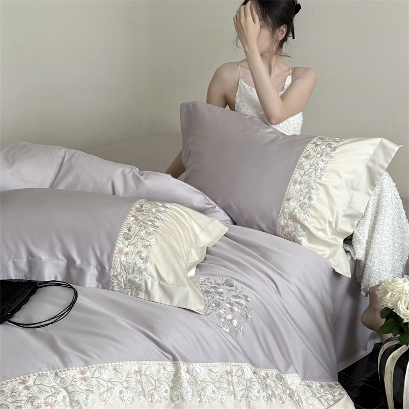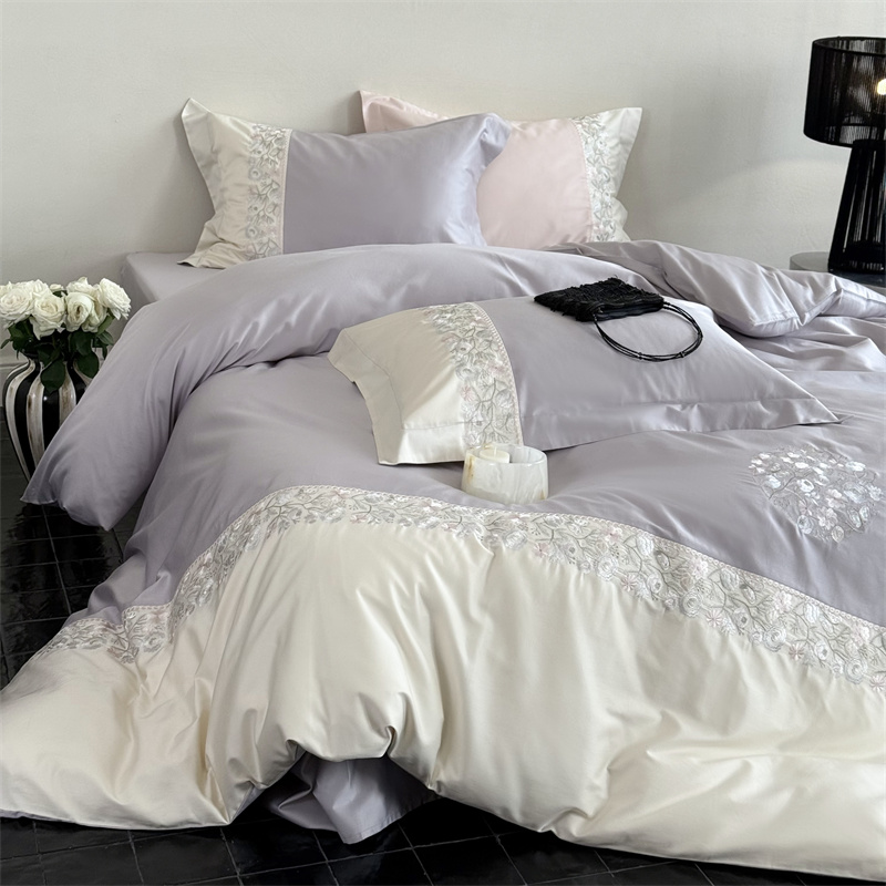 (总)鹿班家居 2025新款秋冬款100S全棉磨毛精密刺绣系列四件套-温柔浅梦(标准会员-20元),温柔浅梦-紫色,温柔浅梦-粉色