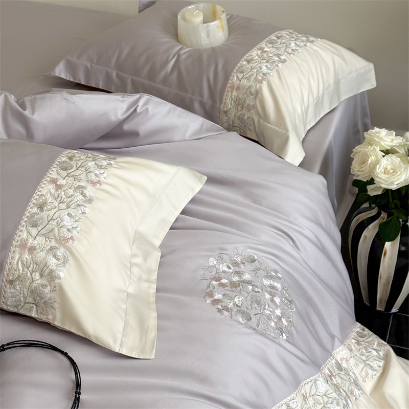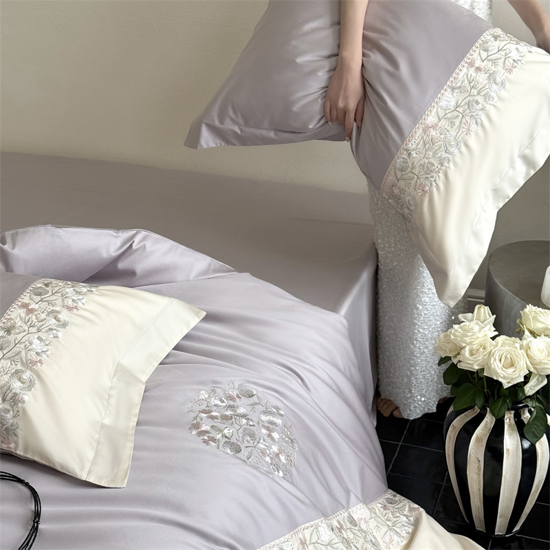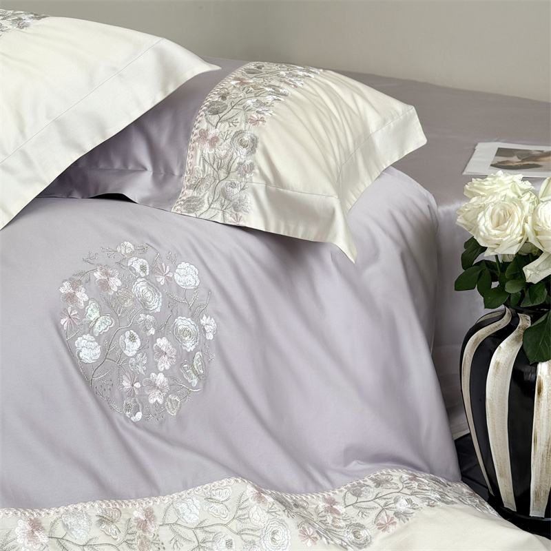 (总)鹿班家居 2026新款100S长绒棉纯棉精密刺绣系列四件套-花影摇曳(标准会员-20元),花影摇曳-粉色,花影摇曳-紫色