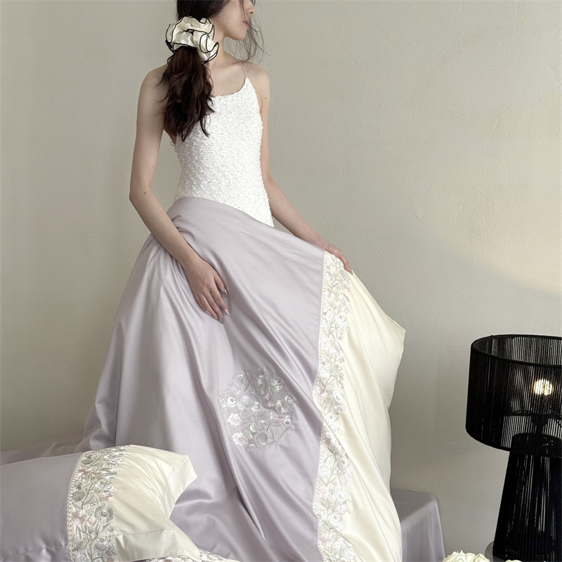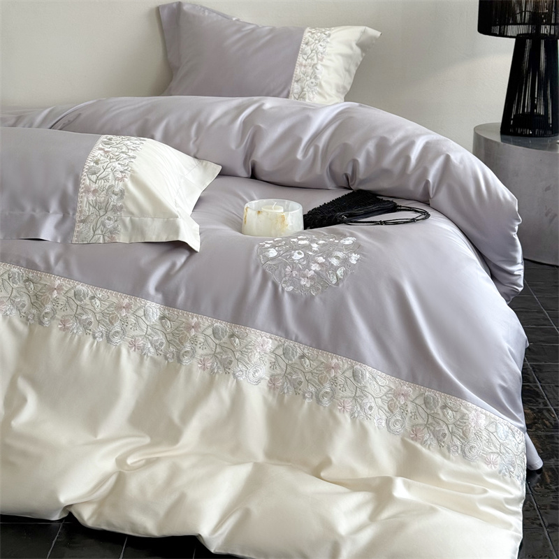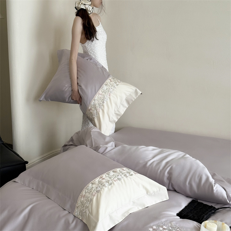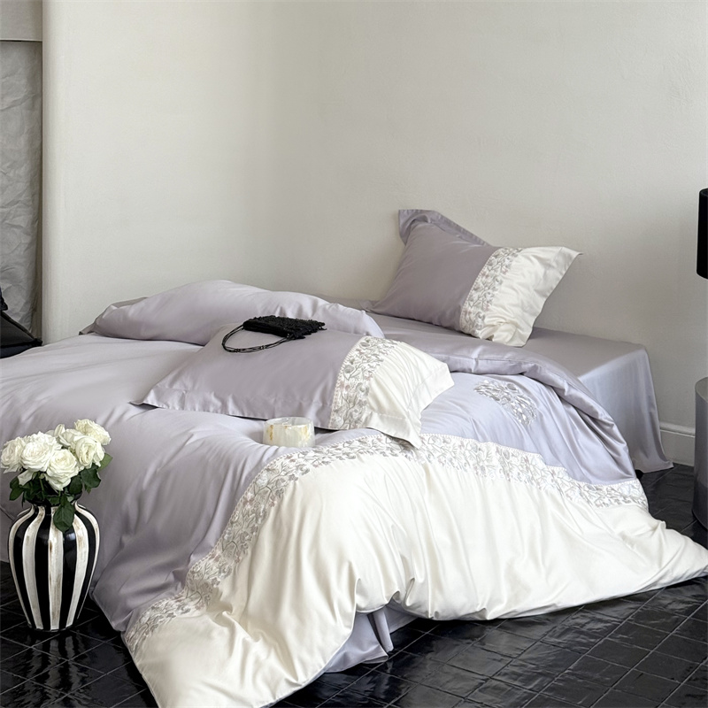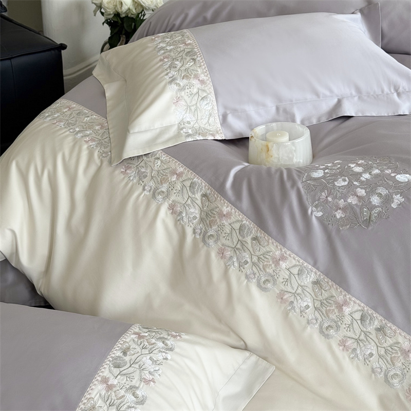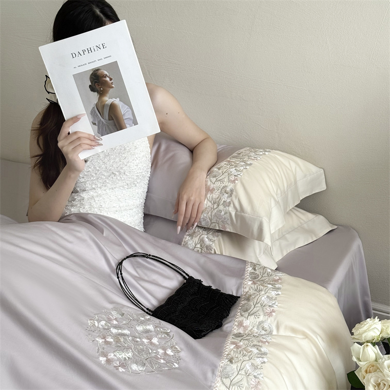 商品名称:(总)鹿班家居2025新款60S莱赛尔精密刺绣四件套系列—间隙花影【标准会员-20元】